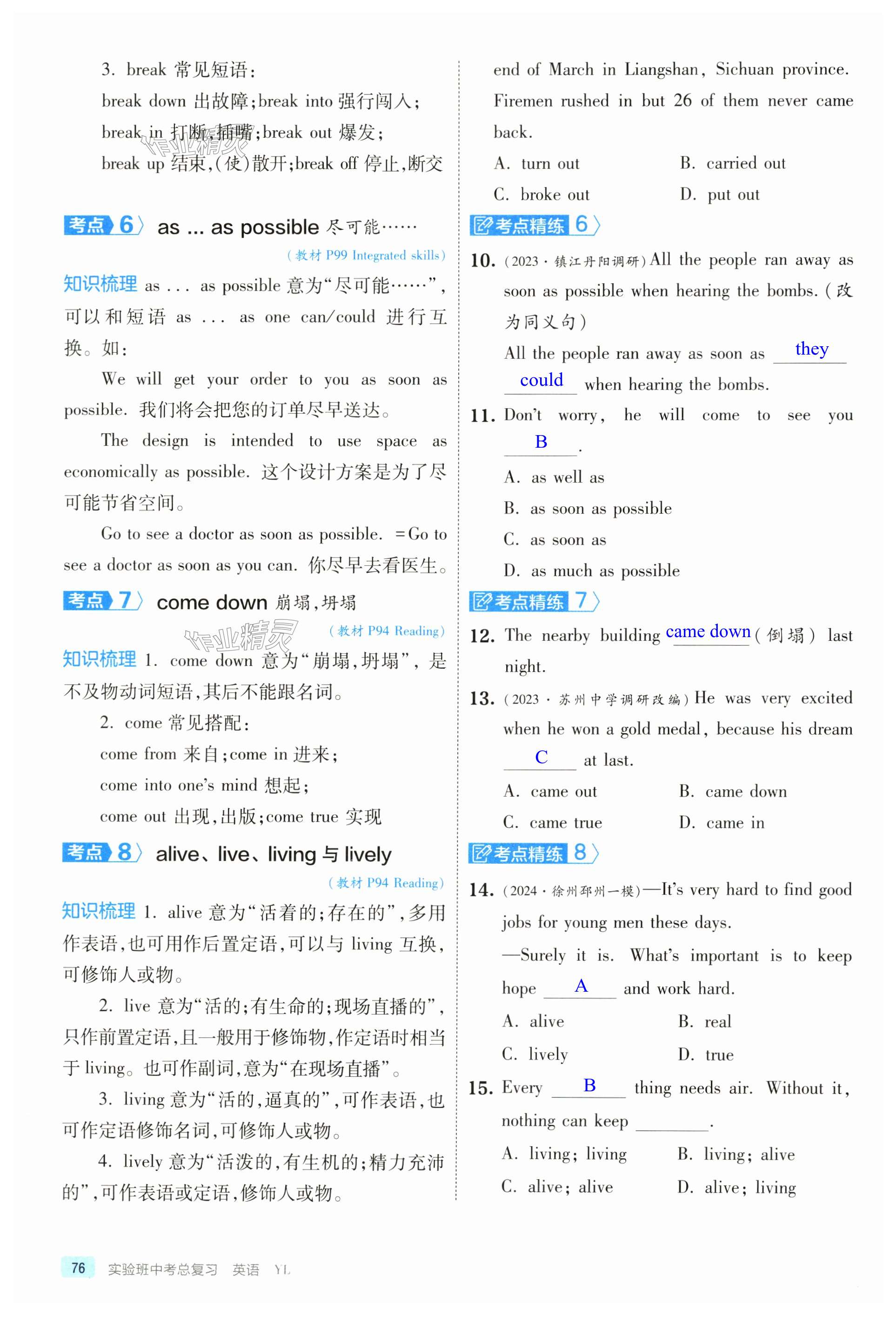 注:目前有些书本章节名称可能整理的还不是很完善,但都是按照顺序排列的,请同学们按照顺序仔细查找。练习册 2025年实验班中考总复习英语江苏专版 答案主要是用来给同学们做完题方便对答案用的,请勿直接抄袭。
