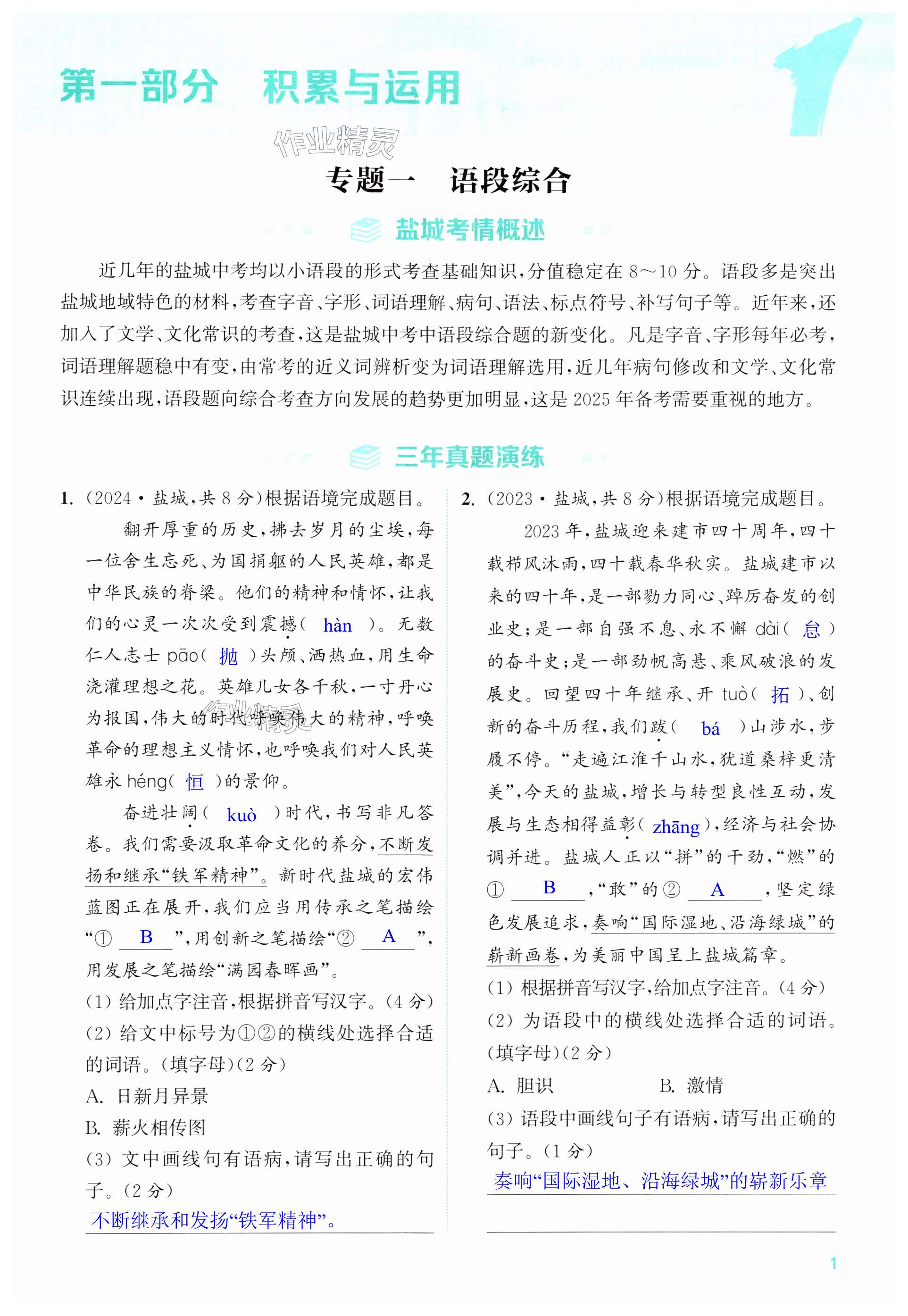 注:目前有些书本章节名称可能整理的还不是很完善,但都是按照顺序排列的,请同学们按照顺序仔细查找。练习册 2025年通城1典中考复习方略语文盐城专用 答案主要是用来给同学们做完题方便对答案用的,请勿直接抄袭。