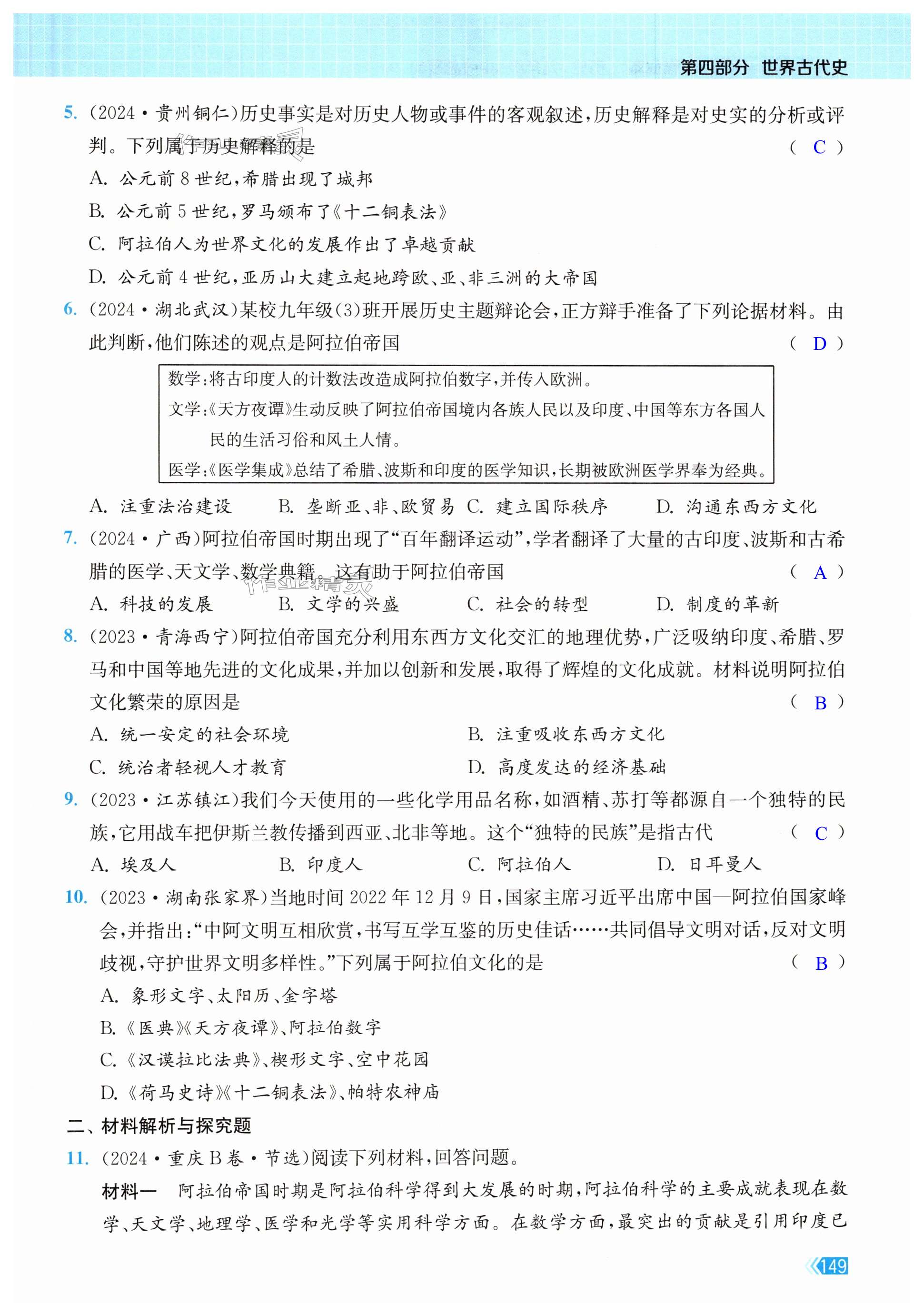 注:目前有些书本章节名称可能整理的还不是很完善,但都是按照顺序排列的,请同学们按照顺序仔细查找。练习册 2025年课时提优计划作业本九年级中考总复习历史 答案主要是用来给同学们做完题方便对答案用的,请勿直接抄袭。