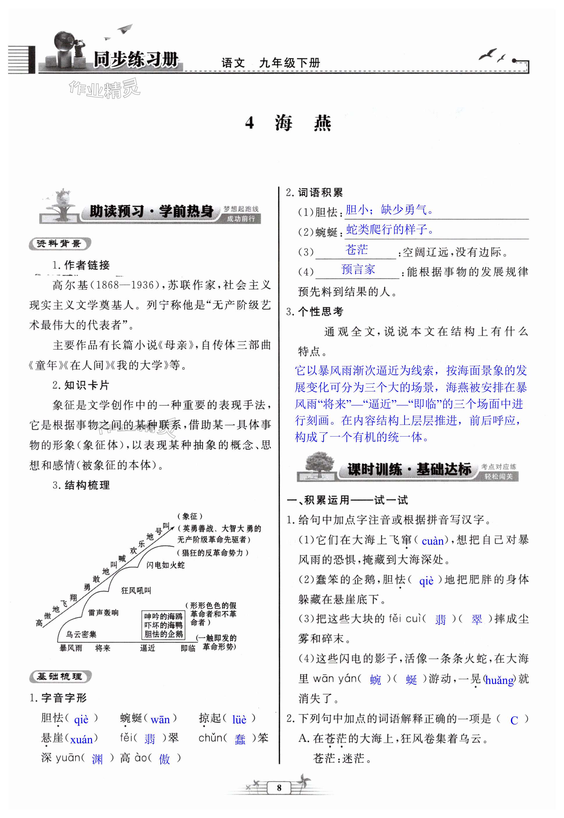 注:目前有些书本章节名称可能整理的还不是很完善,但都是按照顺序排列的,请同学们按照顺序仔细查找。练习册 2025年同步练习册人民教育出版社九年级语文下册人教版江苏专版 答案主要是用来给同学们做完题方便对答案用的,请勿直接抄袭。