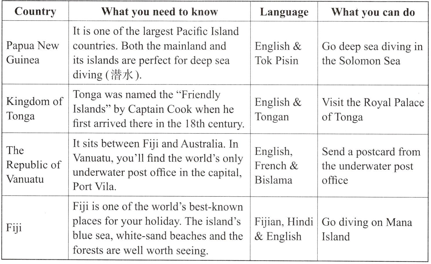 Pacific Island countries have become popular with Chinese tourists. You can have a good time there.