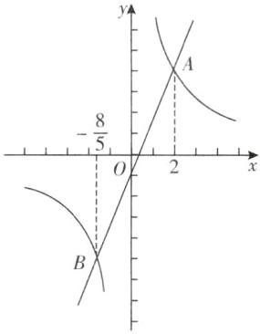 观察函数图象可知,符合条件的$x$的取值范围是$x<-\frac{8}{5}$或$0<x<2$.