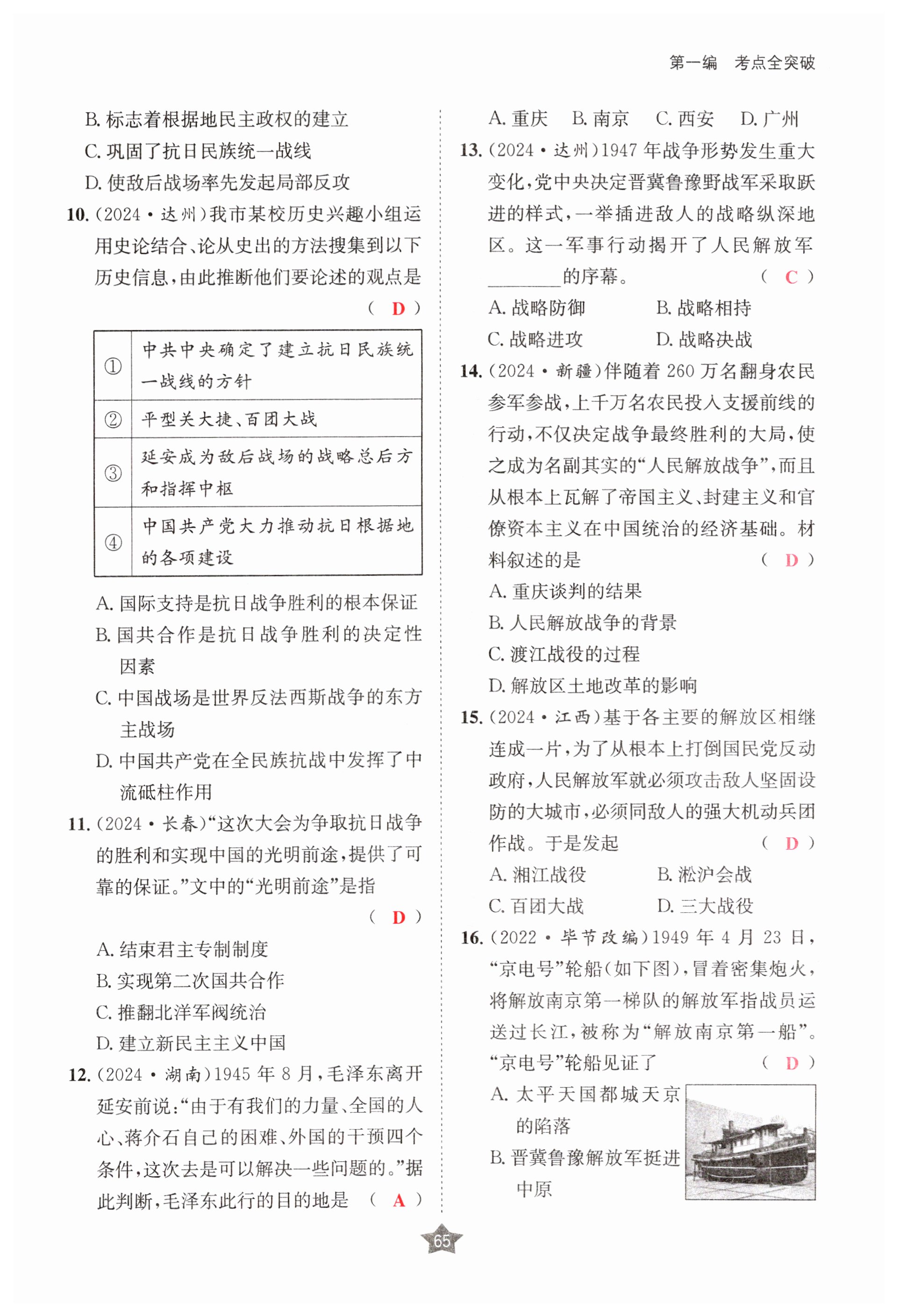 2025年决胜中考历史南充专版