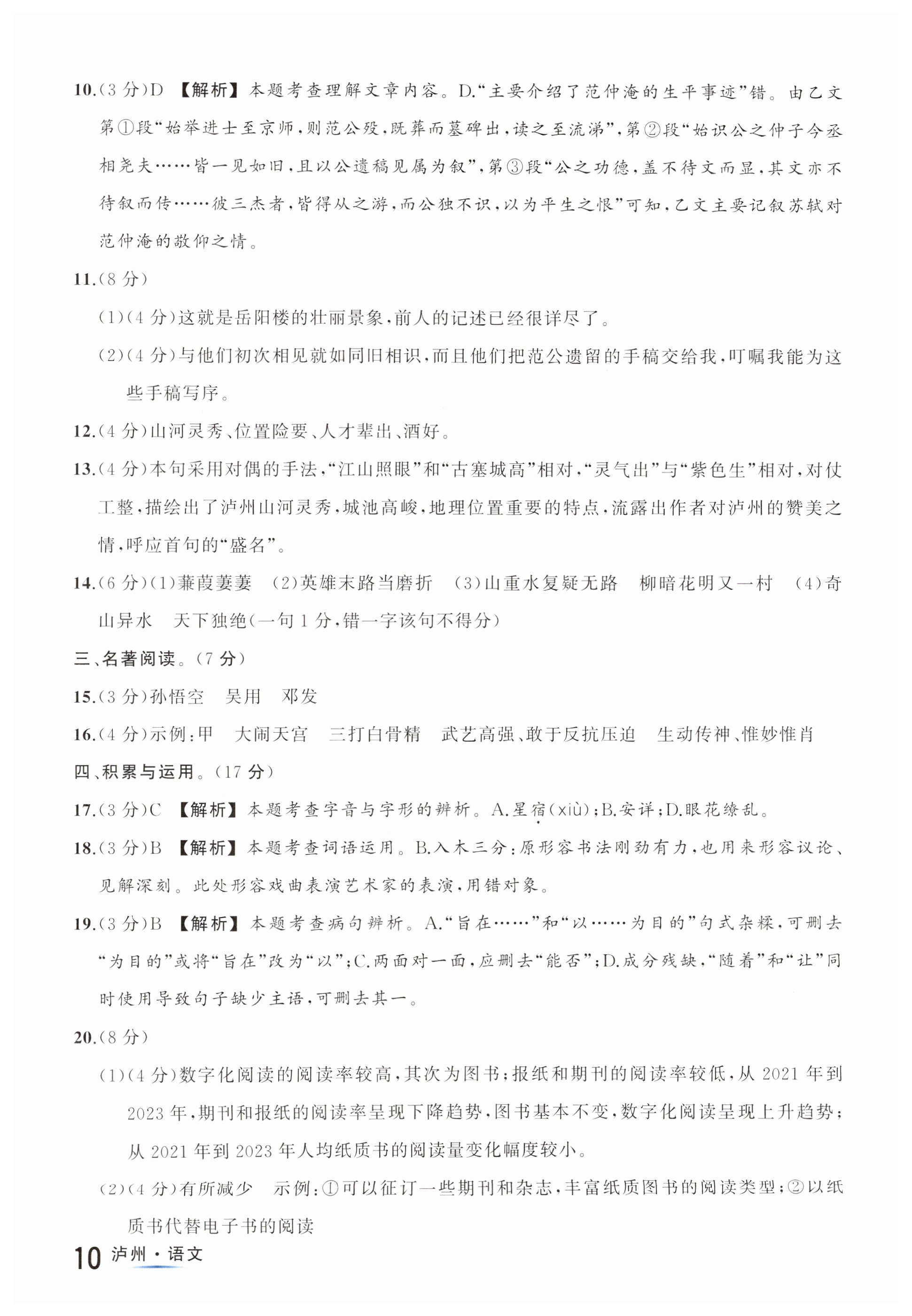 注:目前有些书本章节名称可能整理的还不是很完善,但都是按照顺序排列的,请同学们按照顺序仔细查找。练习册 2025年国华考试中考总动员语文泸州专版 答案主要是用来给同学们做完题方便对答案用的,请勿直接抄袭。
