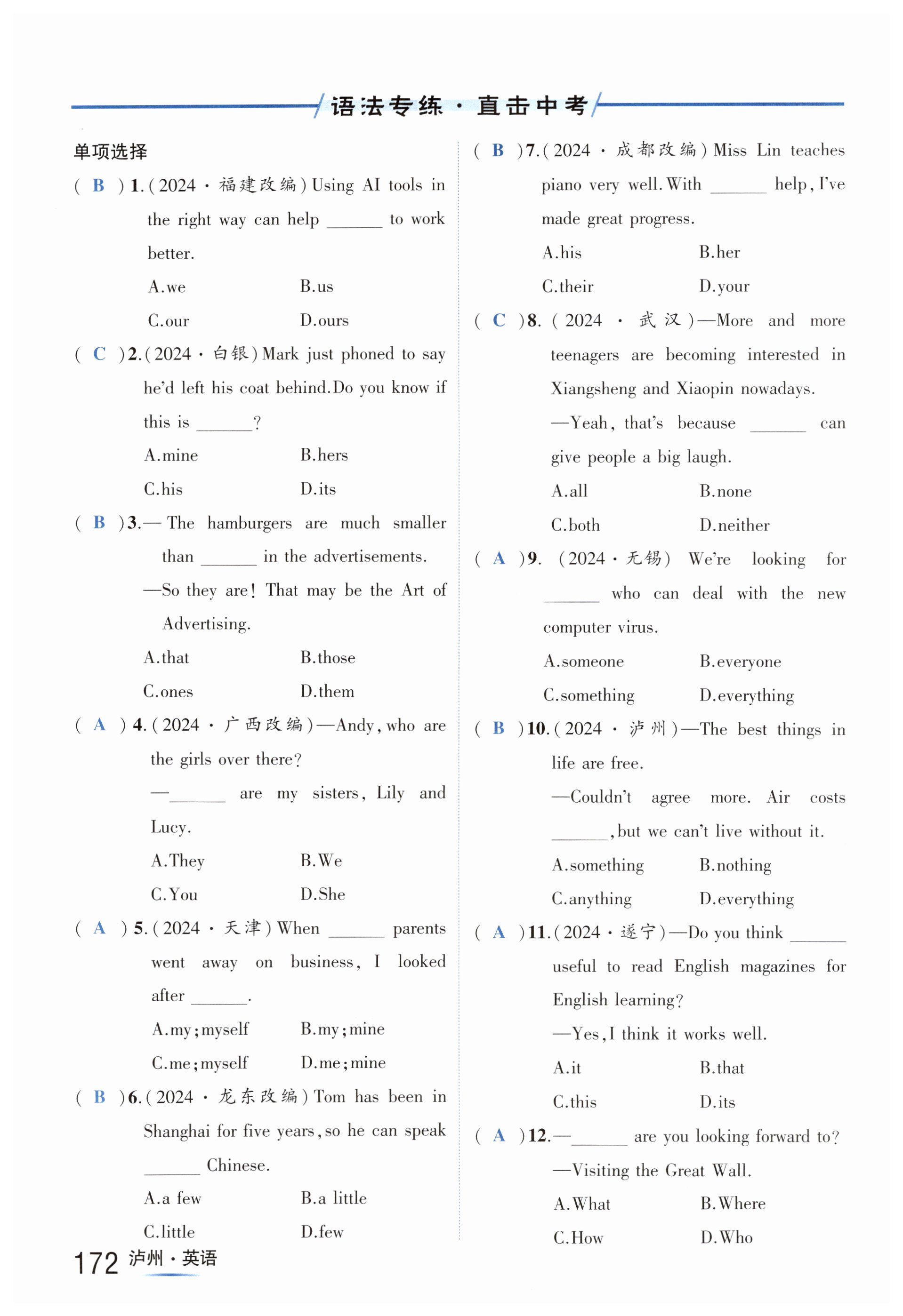 注:目前有些书本章节名称可能整理的还不是很完善,但都是按照顺序排列的,请同学们按照顺序仔细查找。练习册 2025年国华考试中考总动员英语泸州专版 答案主要是用来给同学们做完题方便对答案用的,请勿直接抄袭。