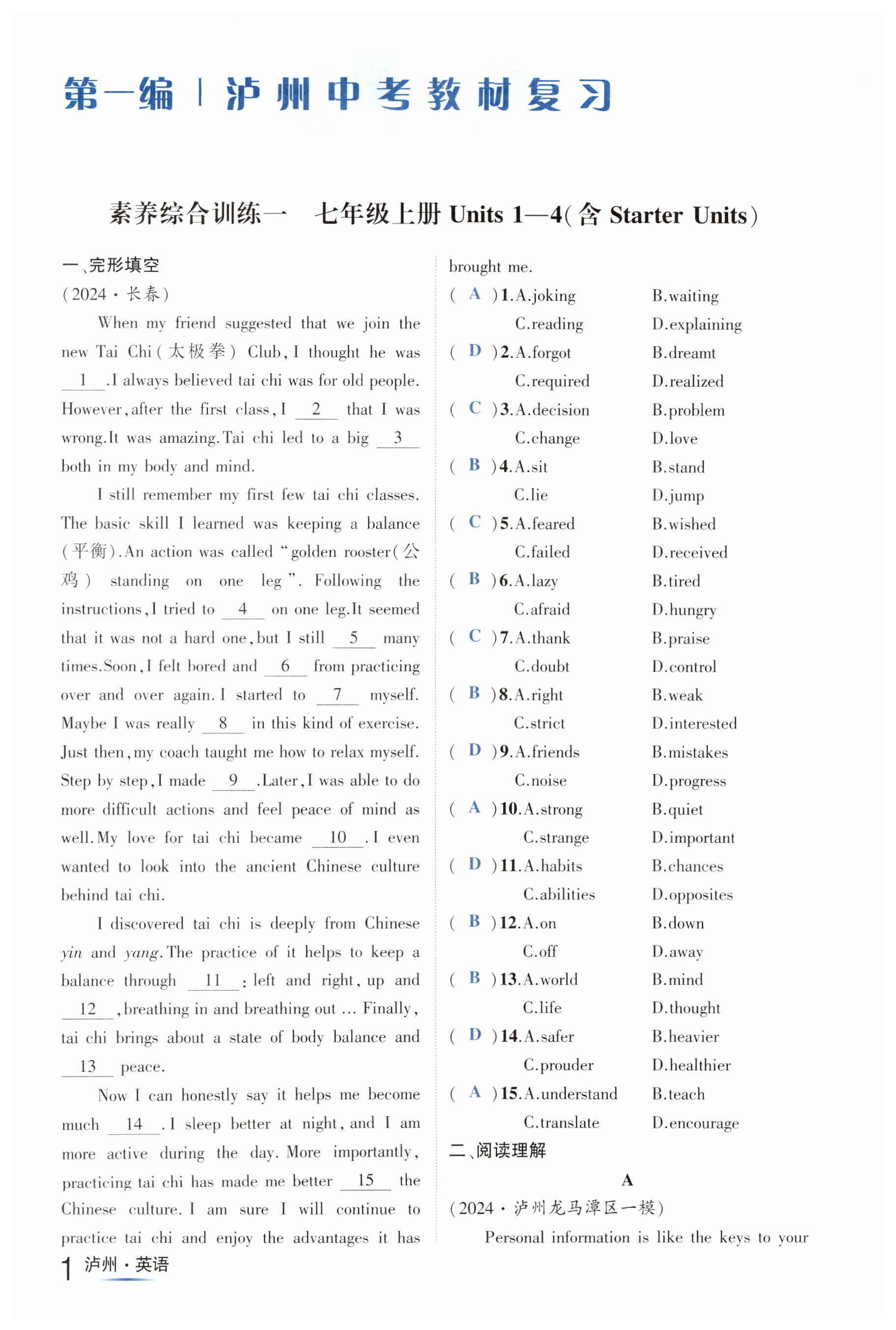 注:目前有些书本章节名称可能整理的还不是很完善,但都是按照顺序排列的,请同学们按照顺序仔细查找。练习册 2025年国华考试中考总动员英语泸州专版 答案主要是用来给同学们做完题方便对答案用的,请勿直接抄袭。
