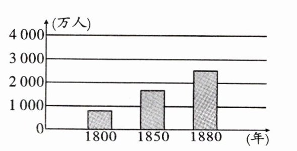 1. 观察右图的1800-1880年英国人口变化表,导致出现表中变化的主要原因是 ( )