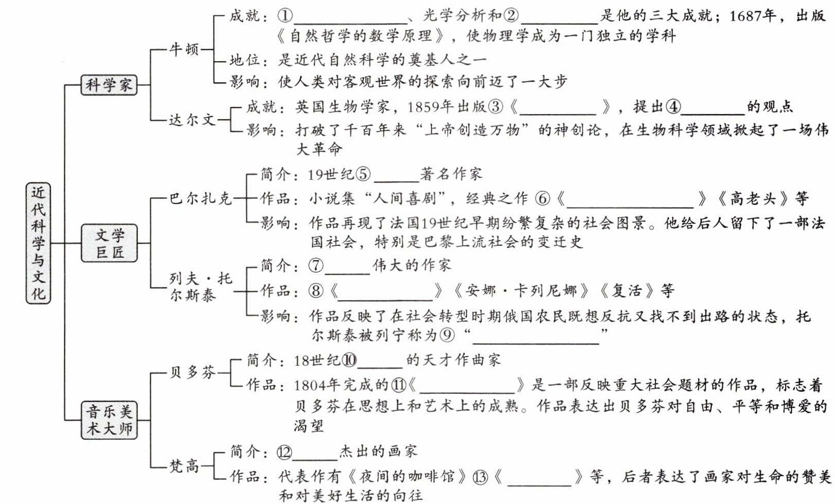 万有引力定律@@微积分学@@物种起源@@进化论@@法国@@欧也妮·葛朗台@@俄国@@战争与和平@@俄国革命的镜子@@德国@@英雄交响曲@@荷兰@@向日葵