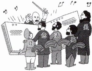 1. 下图是反映1919年巴黎和会的一幅漫画《巴黎大合唱》。漫画中“大合唱”的主题应该是 ( )