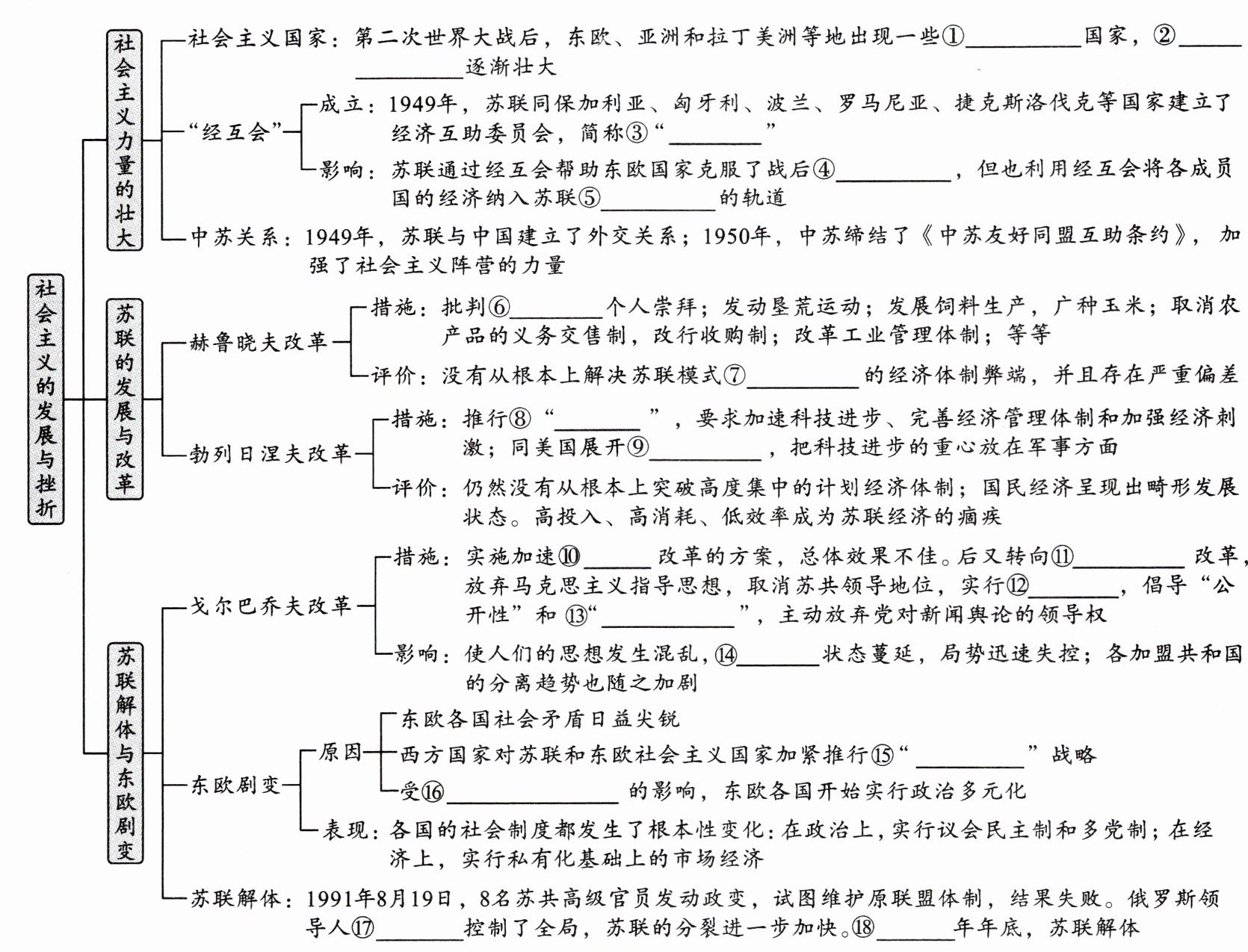 社会主义@@社会主义力量@@经互会@@经济困难@@计划经济@@斯大林@@高度集中@@新政策@@军备竞赛@@经济@@政治体制@@多党制@@政治多元化@@无政府@@和平演变@@戈尔巴乔夫改革@@叶利钦@@1991