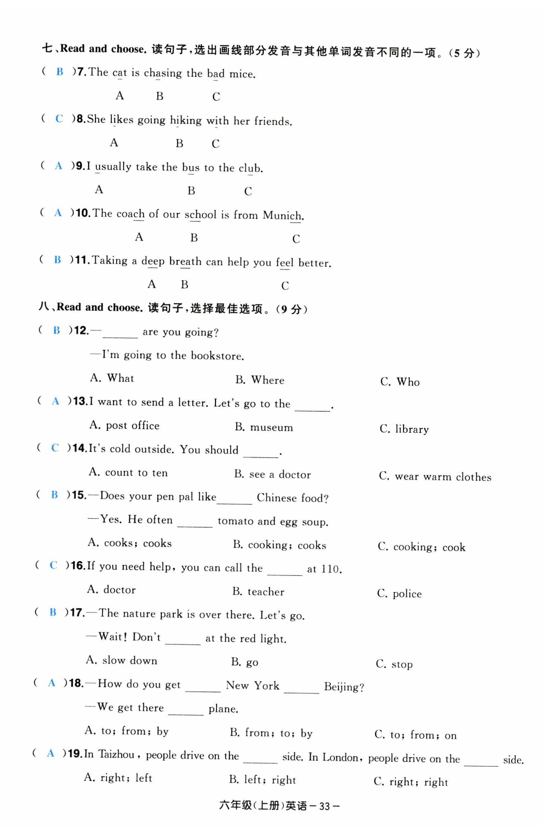 注:目前有些书本章节名称可能整理的还不是很完善,但都是按照顺序排列的,请同学们按照顺序仔细查找。练习册 2024年小学期末加油站六年级英语上册人教版 答案主要是用来给同学们做完题方便对答案用的,请勿直接抄袭。