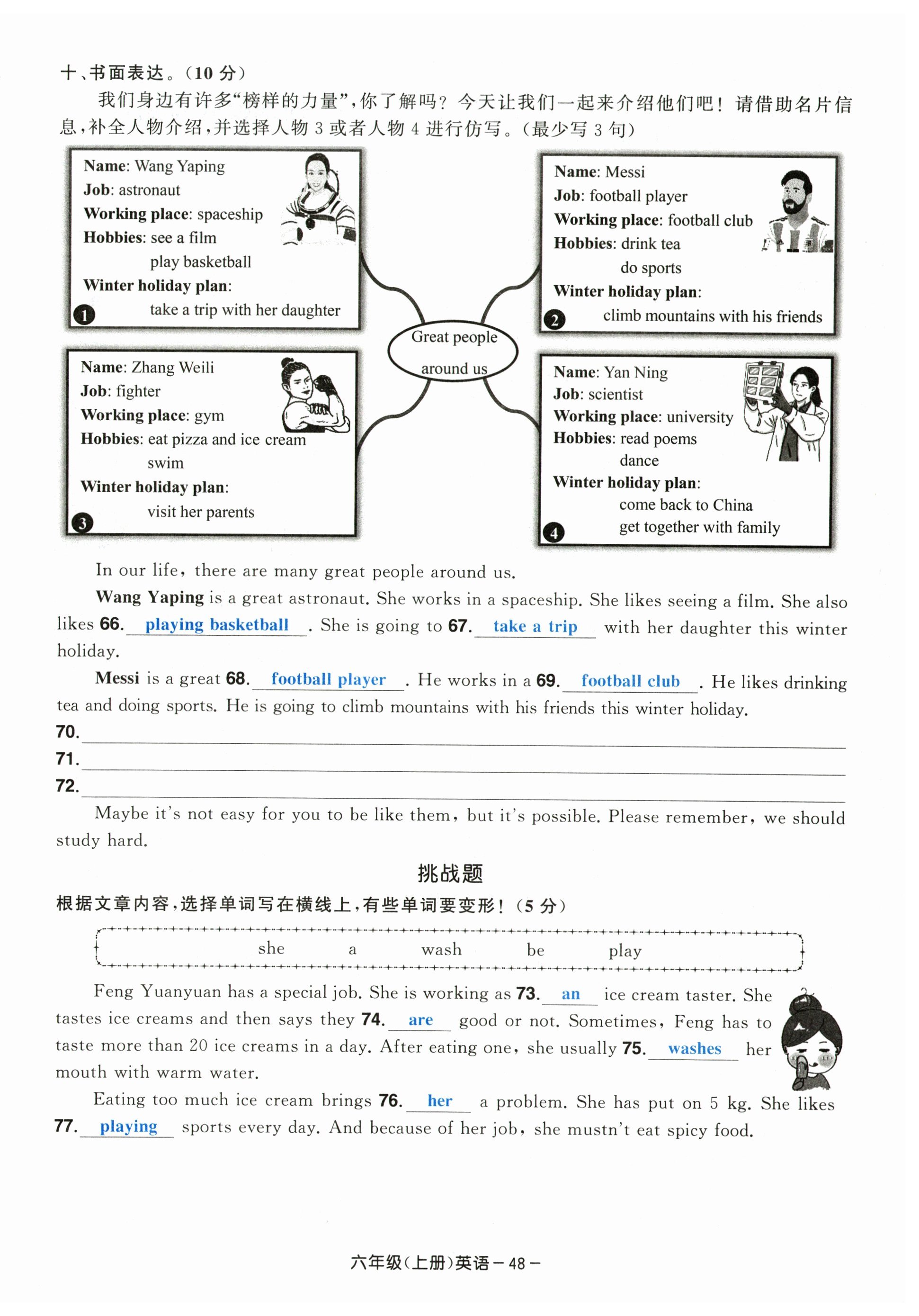 注:目前有些书本章节名称可能整理的还不是很完善,但都是按照顺序排列的,请同学们按照顺序仔细查找。练习册 2024年小学期末加油站六年级英语上册人教版 答案主要是用来给同学们做完题方便对答案用的,请勿直接抄袭。