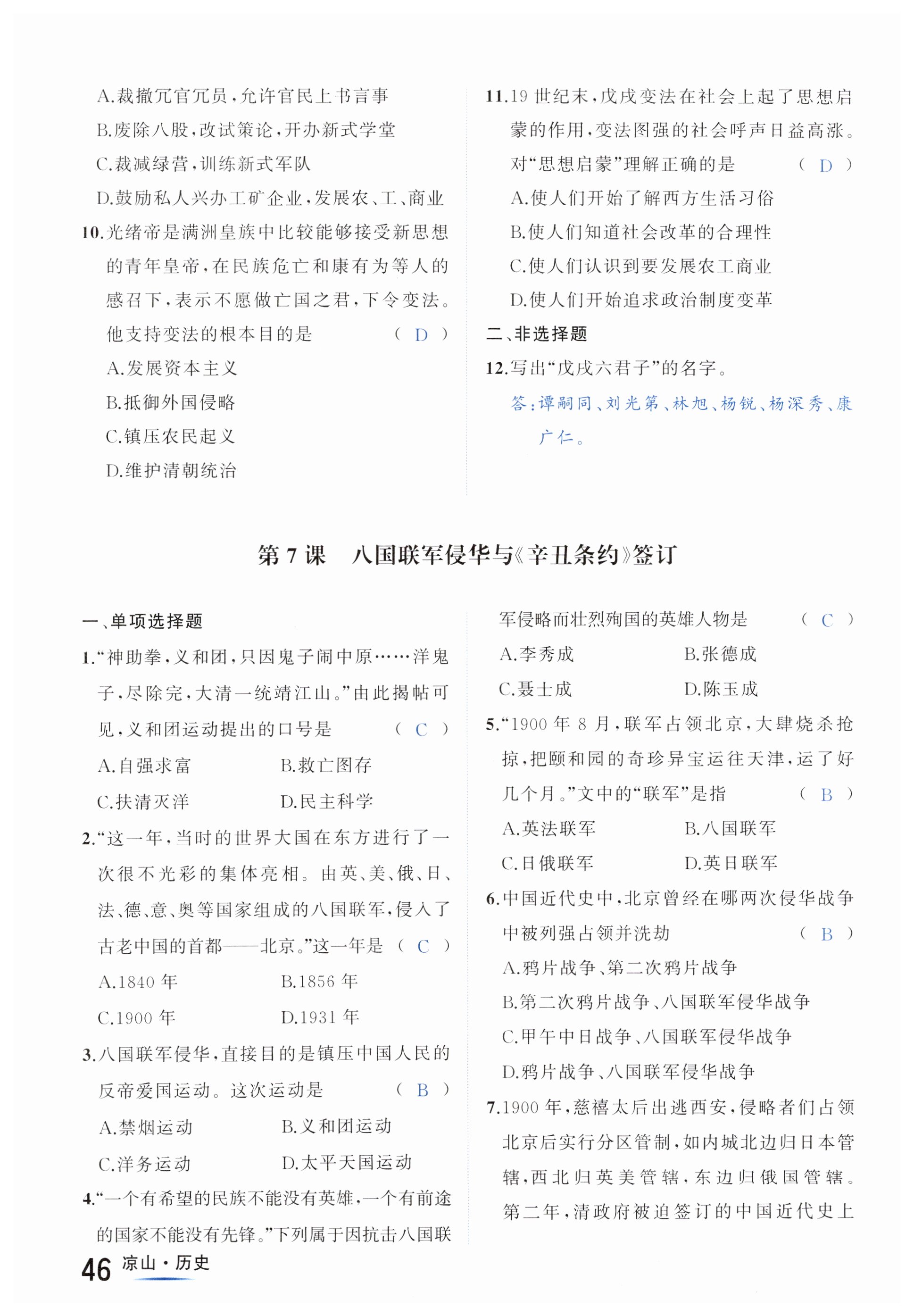 注:目前有些书本章节名称可能整理的还不是很完善,但都是按照顺序排列的,请同学们按照顺序仔细查找。练习册 2025年国华考试中考总动员历史凉山专版 答案主要是用来给同学们做完题方便对答案用的,请勿直接抄袭。