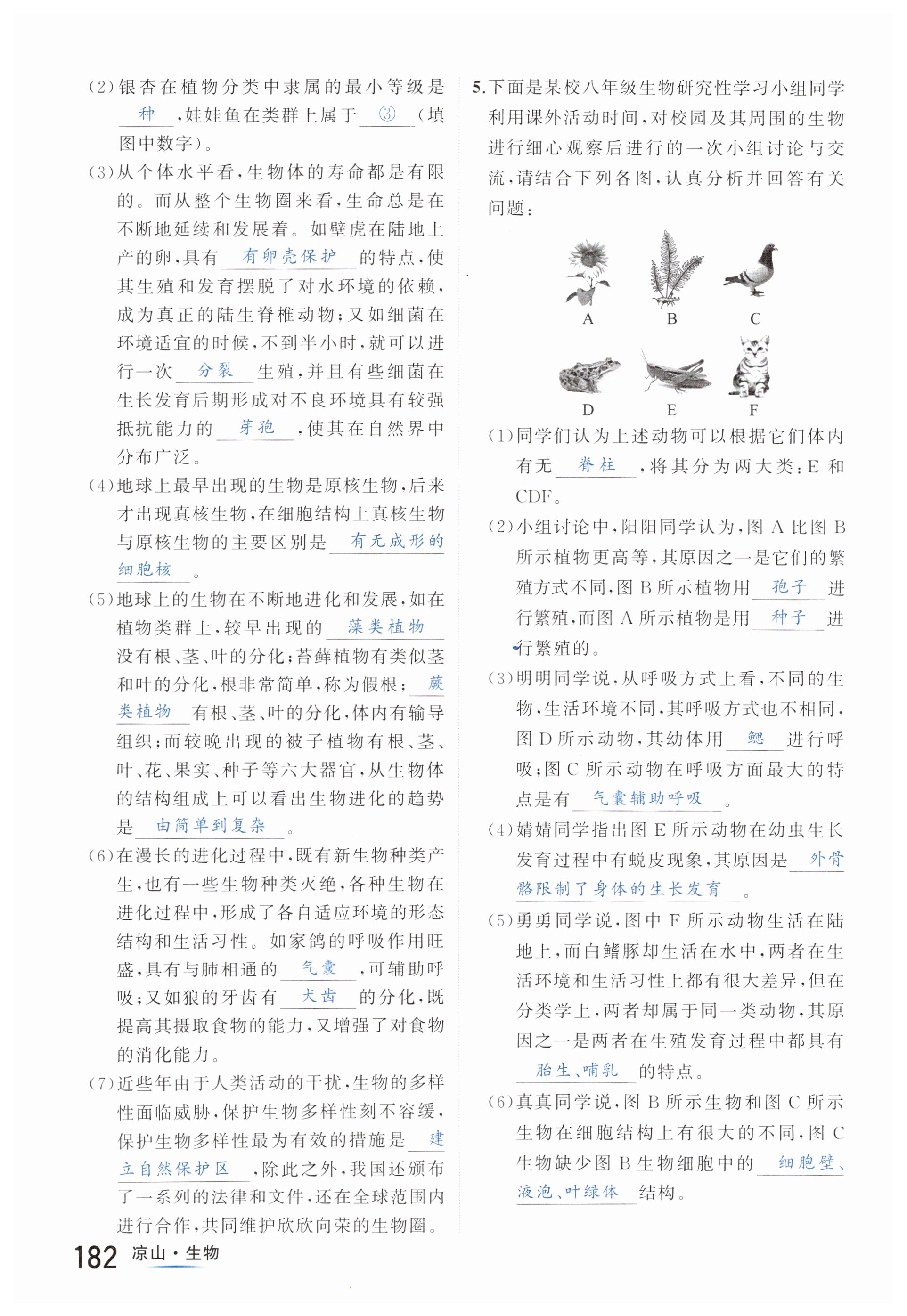 注:目前有些书本章节名称可能整理的还不是很完善,但都是按照顺序排列的,请同学们按照顺序仔细查找。练习册 2025年国华考试中考总动员生物凉山专版 答案主要是用来给同学们做完题方便对答案用的,请勿直接抄袭。