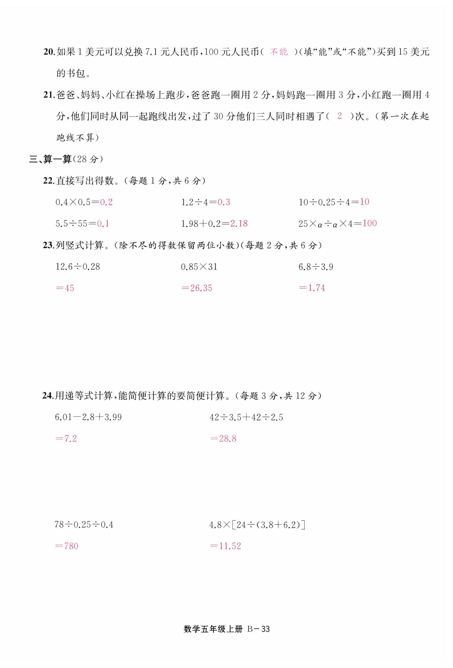 注:目前有些书本章节名称可能整理的还不是很完善,但都是按照顺序排列的,请同学们按照顺序仔细查找。练习册 2024年浙江各地期末迎考卷五年级数学上册北师大版 答案主要是用来给同学们做完题方便对答案用的,请勿直接抄袭。