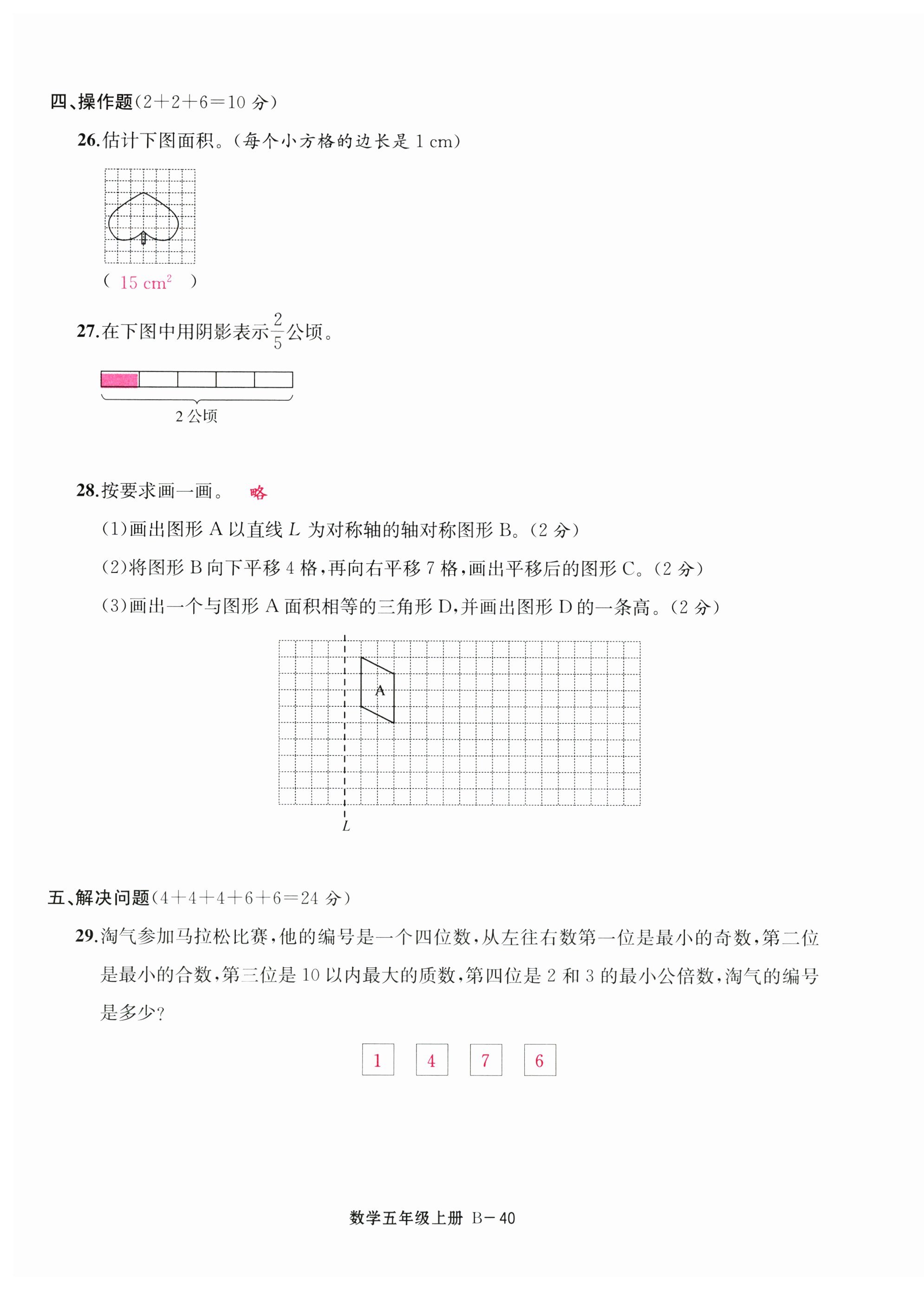 注:目前有些书本章节名称可能整理的还不是很完善,但都是按照顺序排列的,请同学们按照顺序仔细查找。练习册 2024年浙江各地期末迎考卷五年级数学上册北师大版 答案主要是用来给同学们做完题方便对答案用的,请勿直接抄袭。