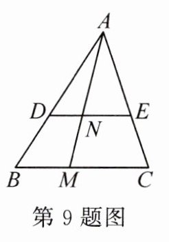 9.如图,在△ABC中,点$D$,$E$分别在$AB$和$AC$上,$DE// BC$,$M$为边$BC$上一点(不与点$B$,$C$重合),连接$AM$交$DE$于点$N$,则图中相似的三角形有( )
