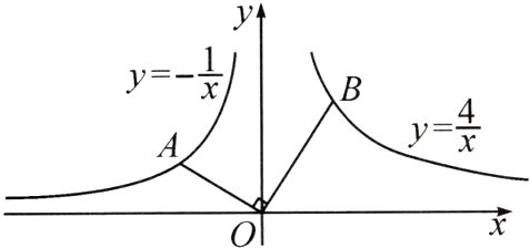 10.(2024·苏州)如图,A是反比例函数$y =-\frac{1}{x}(x\lt0)$图象上的一点,连接AO,过点O作OA的垂线与反比例$y =\frac{4}{x}(x\gt0)$的图象交于点B,则$\frac{AO}{BO}$的值为( )