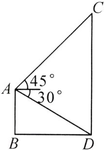 解:过点$A$作$AE\perp CD$,垂足为$E$。由题意,得$AB = DE = 20\ m$,在$Rt\triangle ADE$中,$\angle EAD = 30^{\circ}$,$\therefore AE=\frac{DE}{\tan30^{\circ}}=\frac{20}{\frac{\sqrt{3}}{3}} = 20\sqrt{3}(m)$。在$Rt\triangle AEC$中,$\angle CAE = 45^{\circ}$,$\therefore CE = AE\cdot\tan45^{\circ}=20\sqrt{3}\times1 = 20\sqrt{3}(m)$,$\therefore CD = DE + CE=(20 + 20\sqrt{3})m$。答:信号塔的高度为$(20 + 20\sqrt{3})m$。