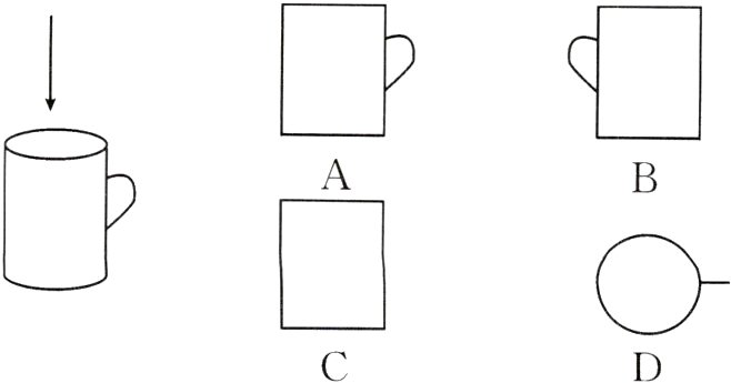 8. 如图,水杯的杯口与投影面平行,投影线的方向如箭头所示,它的正投影是( )
