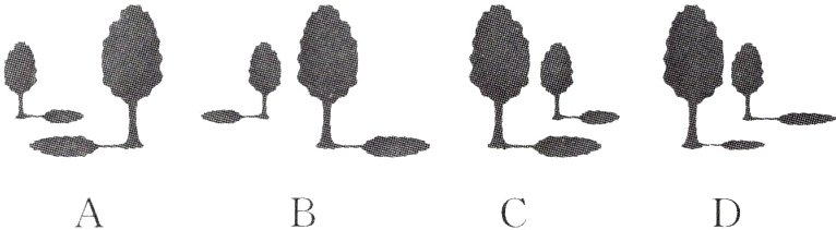 2. 在下列四幅图形中,能表示两棵小树在同一时刻阳光下影子的图形的是( )