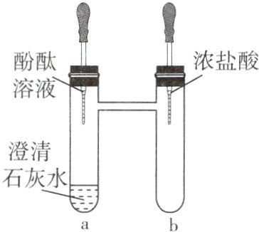 (1)a中装有澄清石灰水,将无色酚酞溶液滴入澄清石灰水中,溶液颜色变为红色;再将浓盐酸滴入b中,一段时间后,a中溶液褪色,说明Ca(OH)₂与HCl发生了反应生成氯化钙和水,化学方程式为Ca(OH)₂ + 2HCl $\xlongequal{}$ CaCl₂ + 2H₂O。