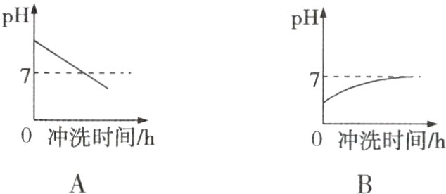 C “某地土壤显碱性”说明该地土壤的pH大于7,经过水冲洗后,其pH应该越来越接近7,且不会等于7,更不会小于7,C项正确。