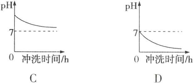 2 某地土壤显碱性,当地的人们常以水冲洗排碱,改良土壤。如下是某同学绘制的冲洗时间与土壤pH的变化关系图,你认为其中正确的是 ( )