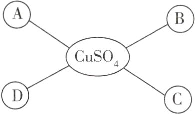 5 小明绘制了硫酸铜的化学性质的思维导图,如图所示(“—”表示相连的物质能发生化学反应)。图中A、B、C、D所代表的物质不正确的是 ( )