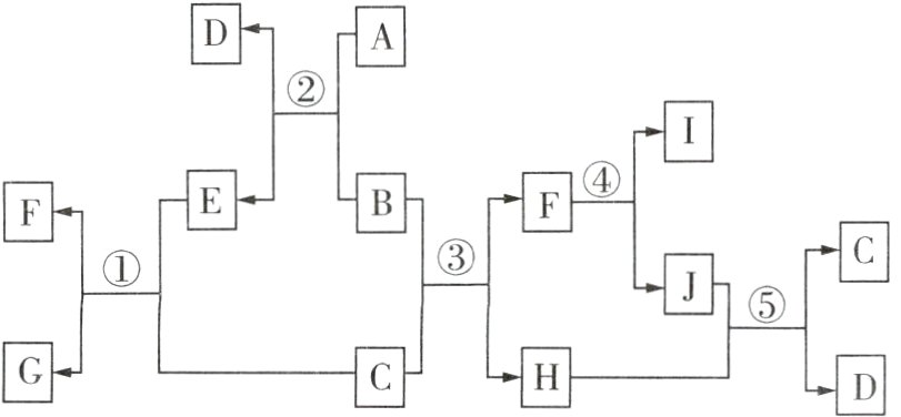 3 [2024唐山一模]唐山是资源丰富的重工业城市。纯碱工业在国内知名,某小组同学对涉及纯碱的反应进行知识网络建构。一些转化关系如下图所示(反应条件已略去)。A~J为初中化学常见物质,其中C为纯碱,F为最常见的建筑材料。请回答下列问题: