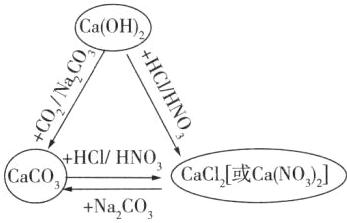 (2)三种物质都含有钙元素,甲可用来改良酸性土壤,故甲是氢氧化钙。乙难溶于水且相对分子质量为100,则乙是碳酸钙。根据转化关系推知丙是氯化钙或硝酸钙。