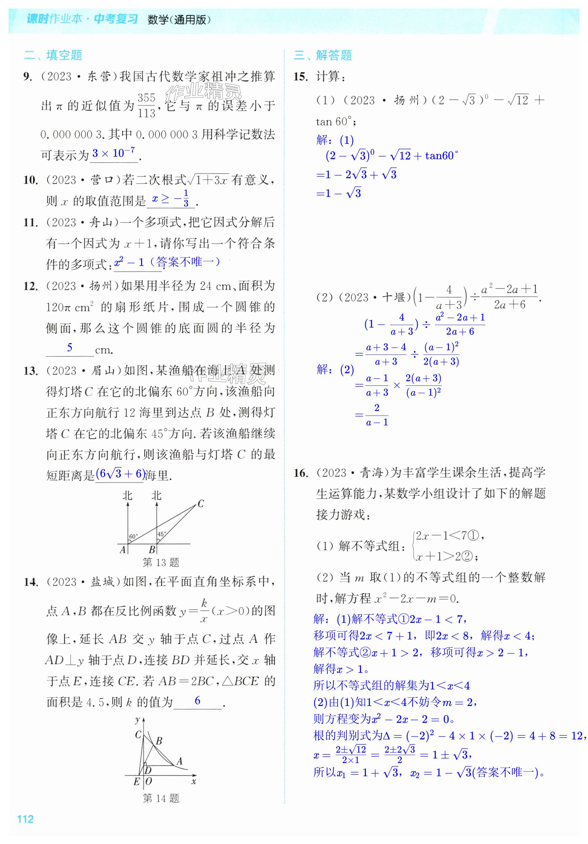 注:目前有些书本章节名称可能整理的还不是很完善,但都是按照顺序排列的,请同学们按照顺序仔细查找。练习册 2025年通城学典课时作业本中考复习数学江苏专版 答案主要是用来给同学们做完题方便对答案用的,请勿直接抄袭。