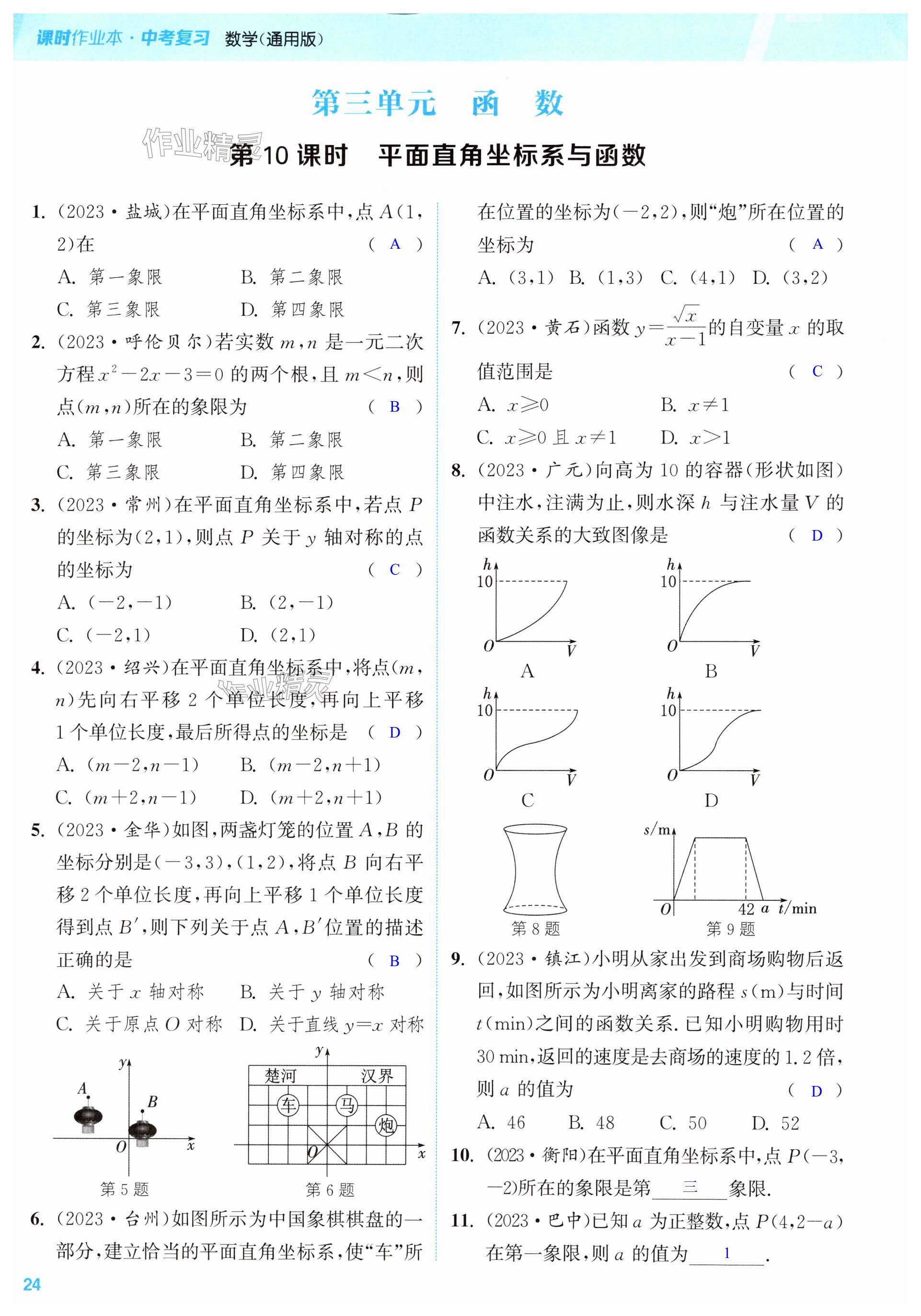注:目前有些书本章节名称可能整理的还不是很完善,但都是按照顺序排列的,请同学们按照顺序仔细查找。练习册 2025年通城学典课时作业本中考复习数学江苏专版 答案主要是用来给同学们做完题方便对答案用的,请勿直接抄袭。