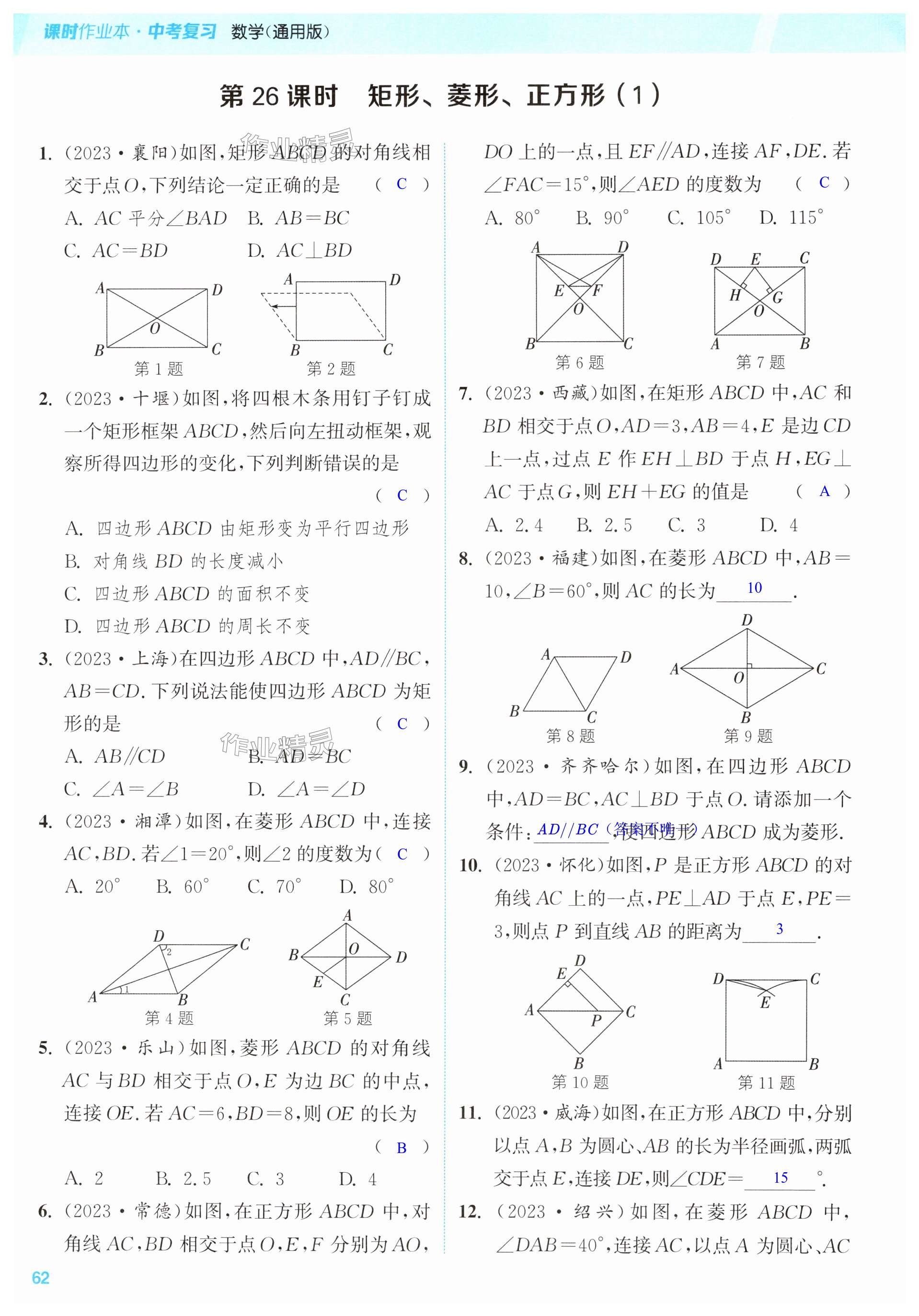 注:目前有些书本章节名称可能整理的还不是很完善,但都是按照顺序排列的,请同学们按照顺序仔细查找。练习册 2025年通城学典课时作业本中考复习数学江苏专版 答案主要是用来给同学们做完题方便对答案用的,请勿直接抄袭。
