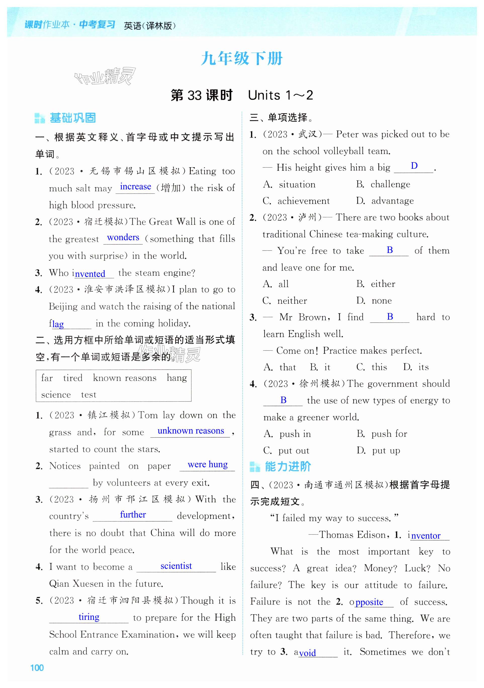 注:目前有些书本章节名称可能整理的还不是很完善,但都是按照顺序排列的,请同学们按照顺序仔细查找。练习册 2025年通城学典课时作业本中考复习英语译林版江苏专版 答案主要是用来给同学们做完题方便对答案用的,请勿直接抄袭。