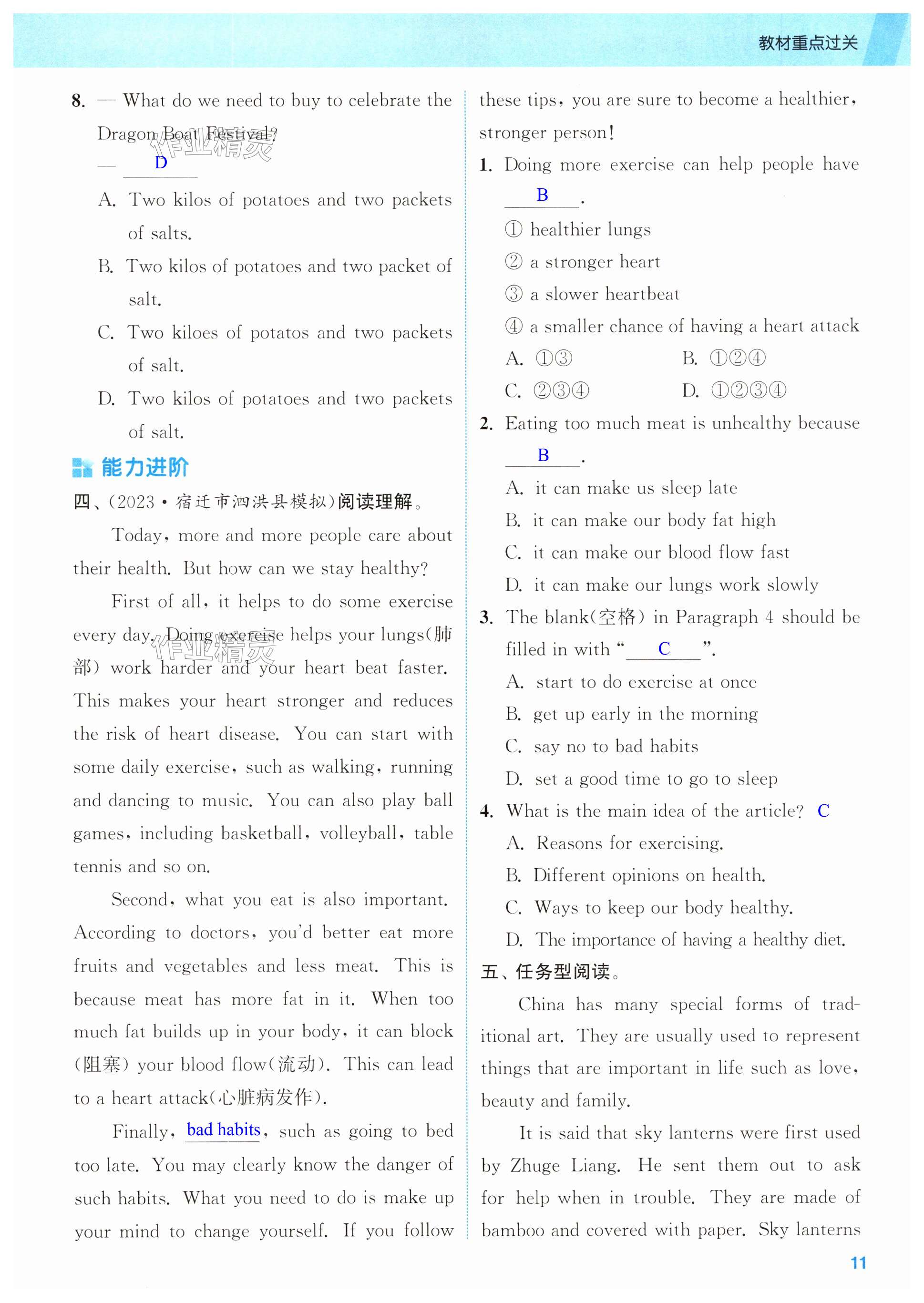 注:目前有些书本章节名称可能整理的还不是很完善,但都是按照顺序排列的,请同学们按照顺序仔细查找。练习册 2025年通城学典课时作业本中考复习英语译林版江苏专版 答案主要是用来给同学们做完题方便对答案用的,请勿直接抄袭。