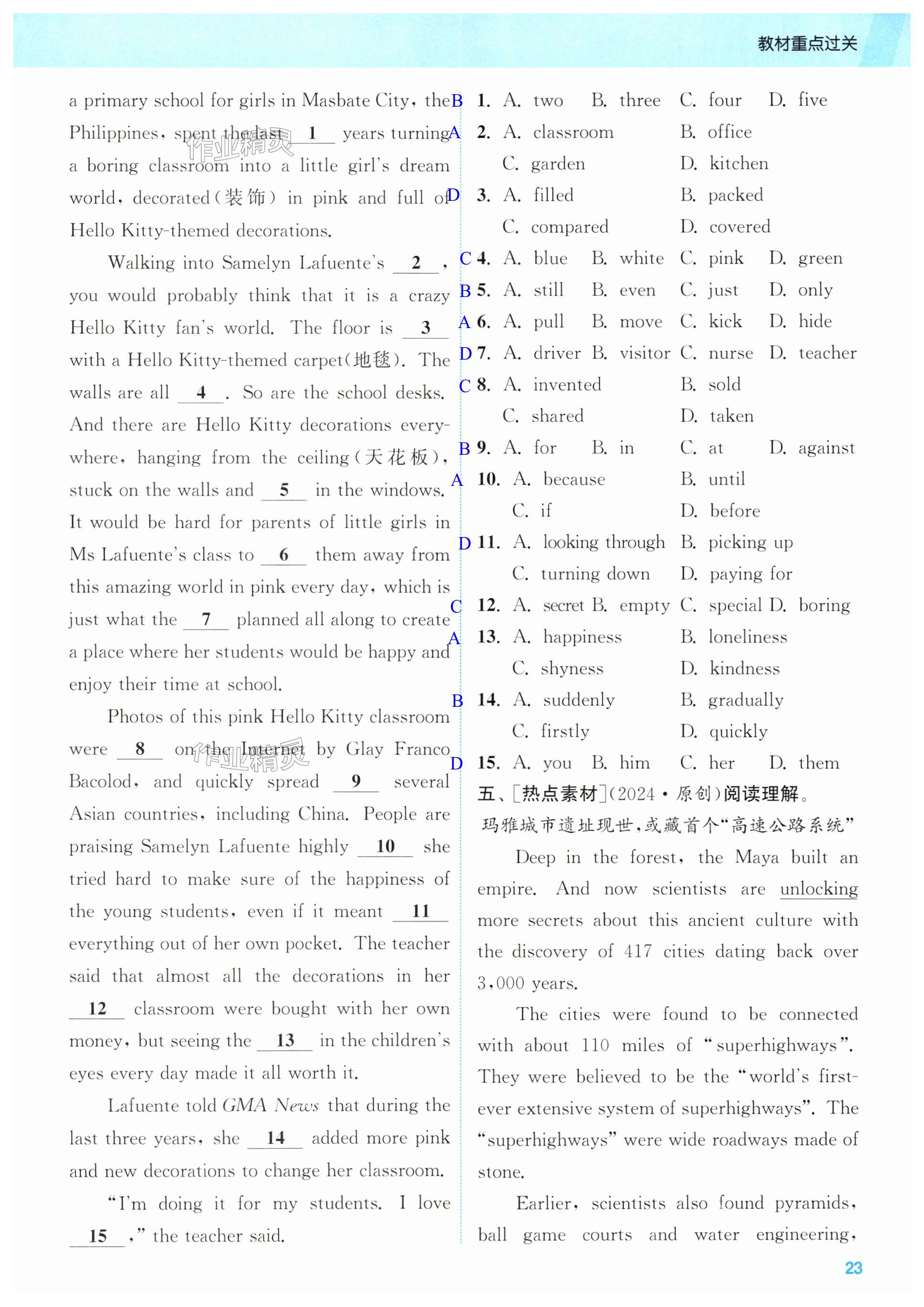 注:目前有些书本章节名称可能整理的还不是很完善,但都是按照顺序排列的,请同学们按照顺序仔细查找。练习册 2025年通城学典课时作业本中考复习英语译林版江苏专版 答案主要是用来给同学们做完题方便对答案用的,请勿直接抄袭。