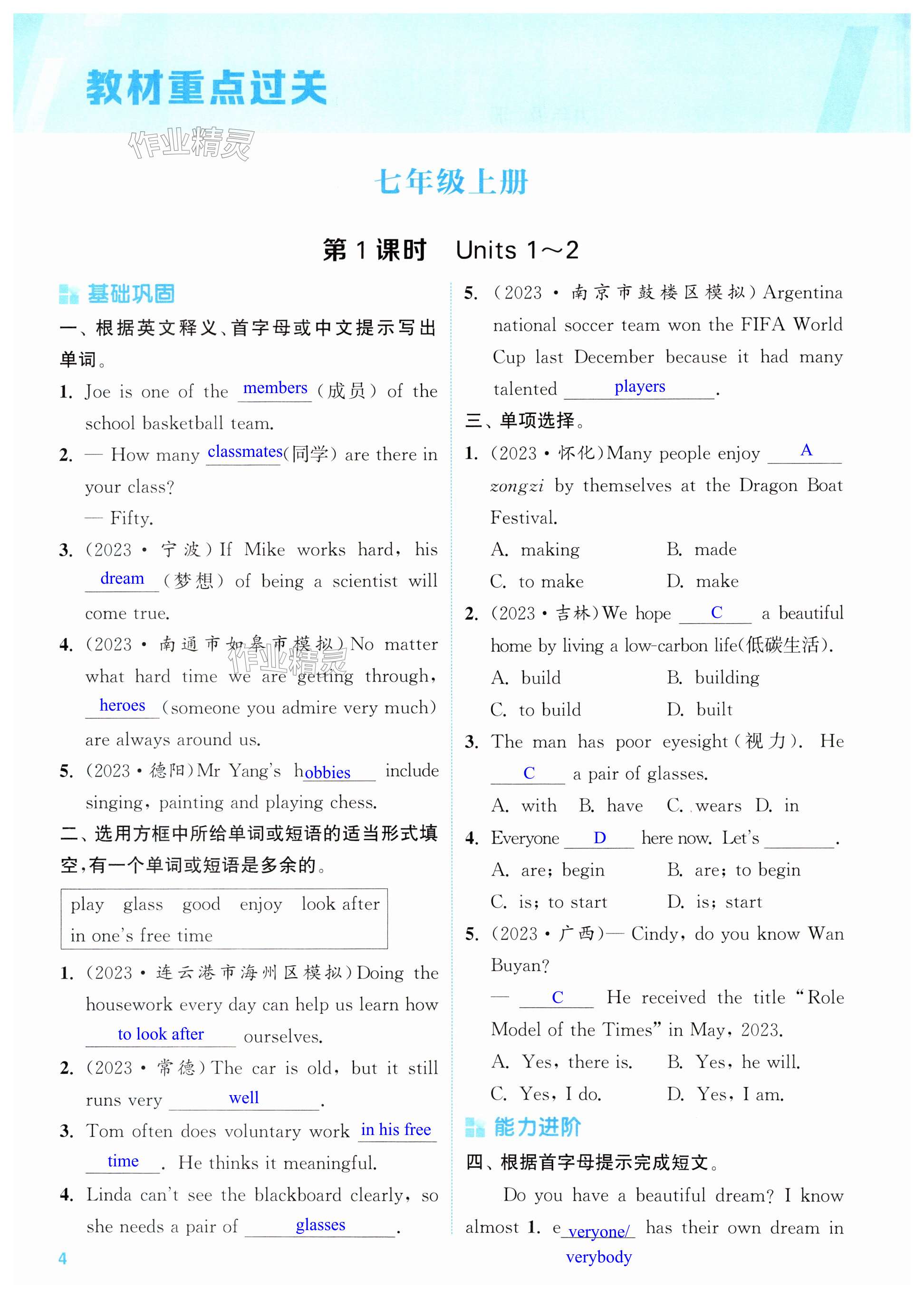 注:目前有些书本章节名称可能整理的还不是很完善,但都是按照顺序排列的,请同学们按照顺序仔细查找。练习册 2025年通城学典课时作业本中考复习英语译林版江苏专版 答案主要是用来给同学们做完题方便对答案用的,请勿直接抄袭。