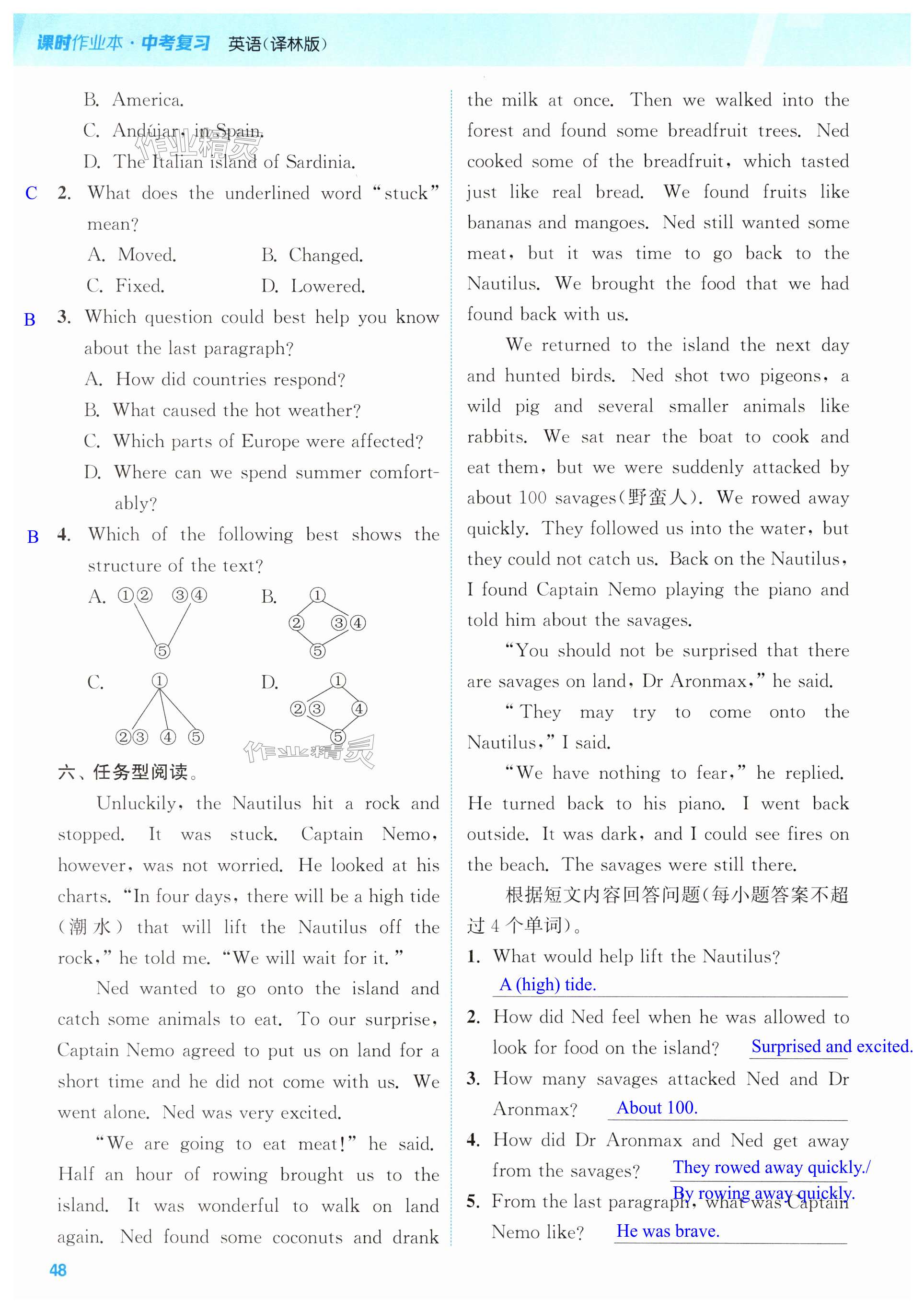 注:目前有些书本章节名称可能整理的还不是很完善,但都是按照顺序排列的,请同学们按照顺序仔细查找。练习册 2025年通城学典课时作业本中考复习英语译林版江苏专版 答案主要是用来给同学们做完题方便对答案用的,请勿直接抄袭。