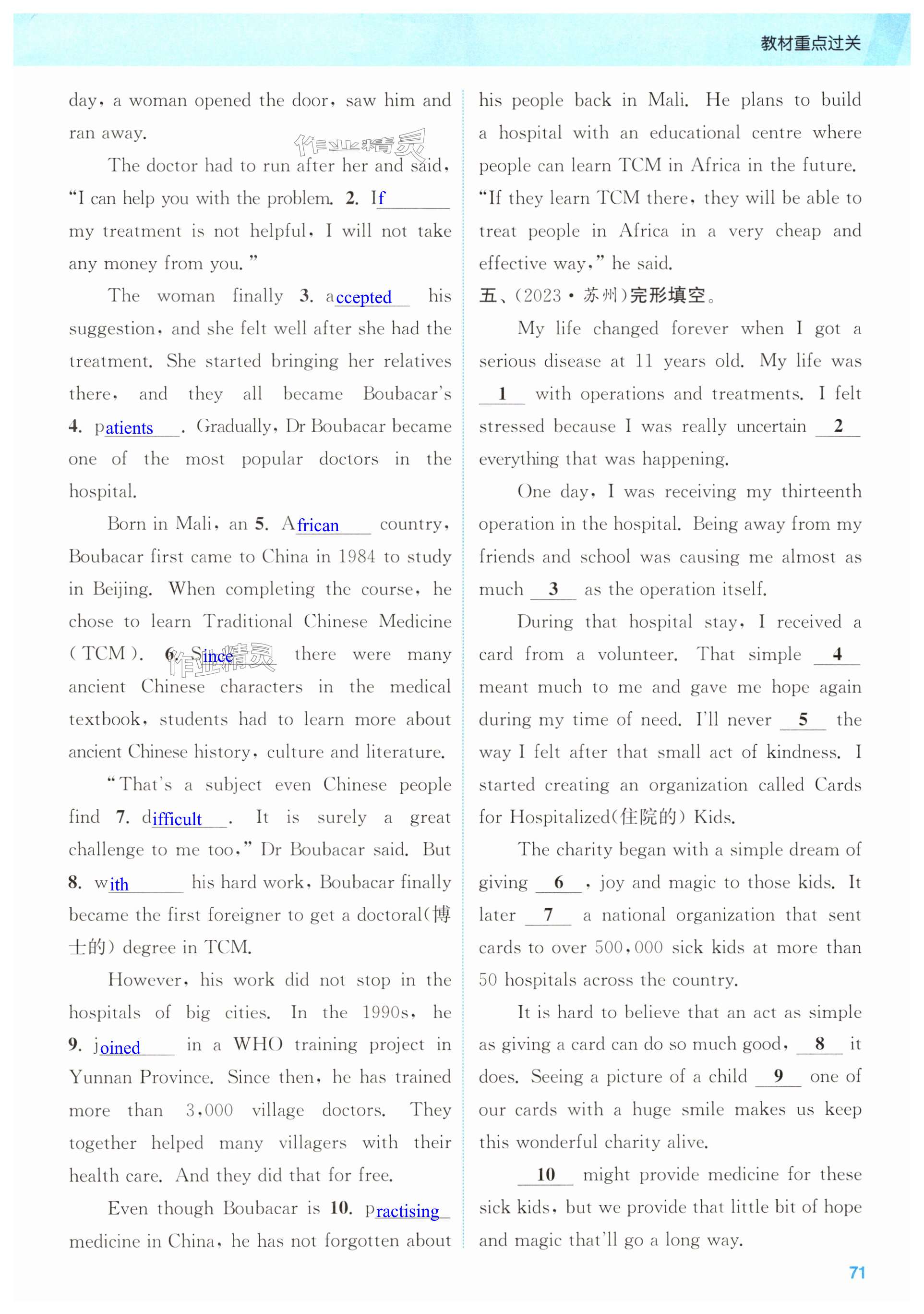 注:目前有些书本章节名称可能整理的还不是很完善,但都是按照顺序排列的,请同学们按照顺序仔细查找。练习册 2025年通城学典课时作业本中考复习英语译林版江苏专版 答案主要是用来给同学们做完题方便对答案用的,请勿直接抄袭。