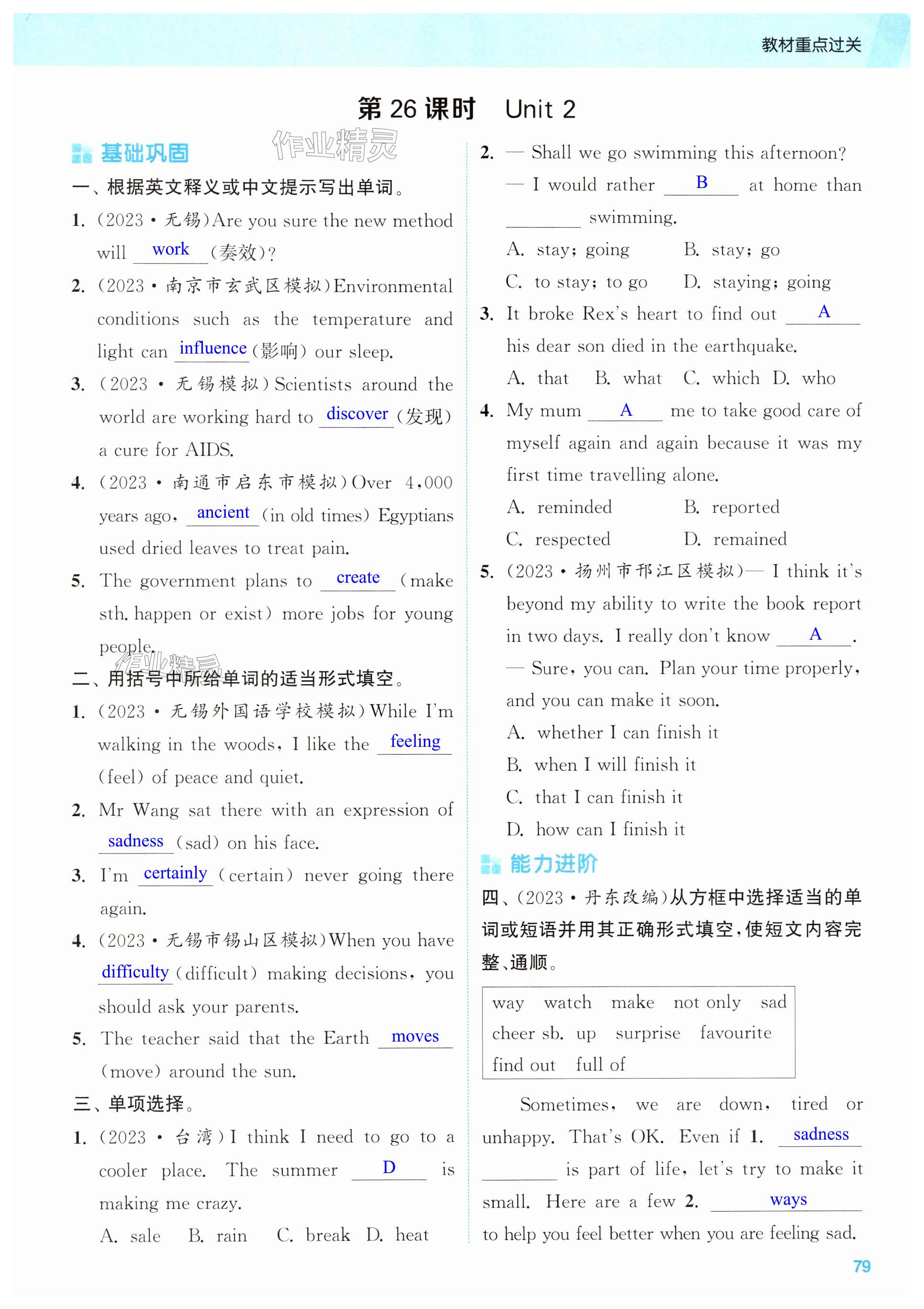 注:目前有些书本章节名称可能整理的还不是很完善,但都是按照顺序排列的,请同学们按照顺序仔细查找。练习册 2025年通城学典课时作业本中考复习英语译林版江苏专版 答案主要是用来给同学们做完题方便对答案用的,请勿直接抄袭。