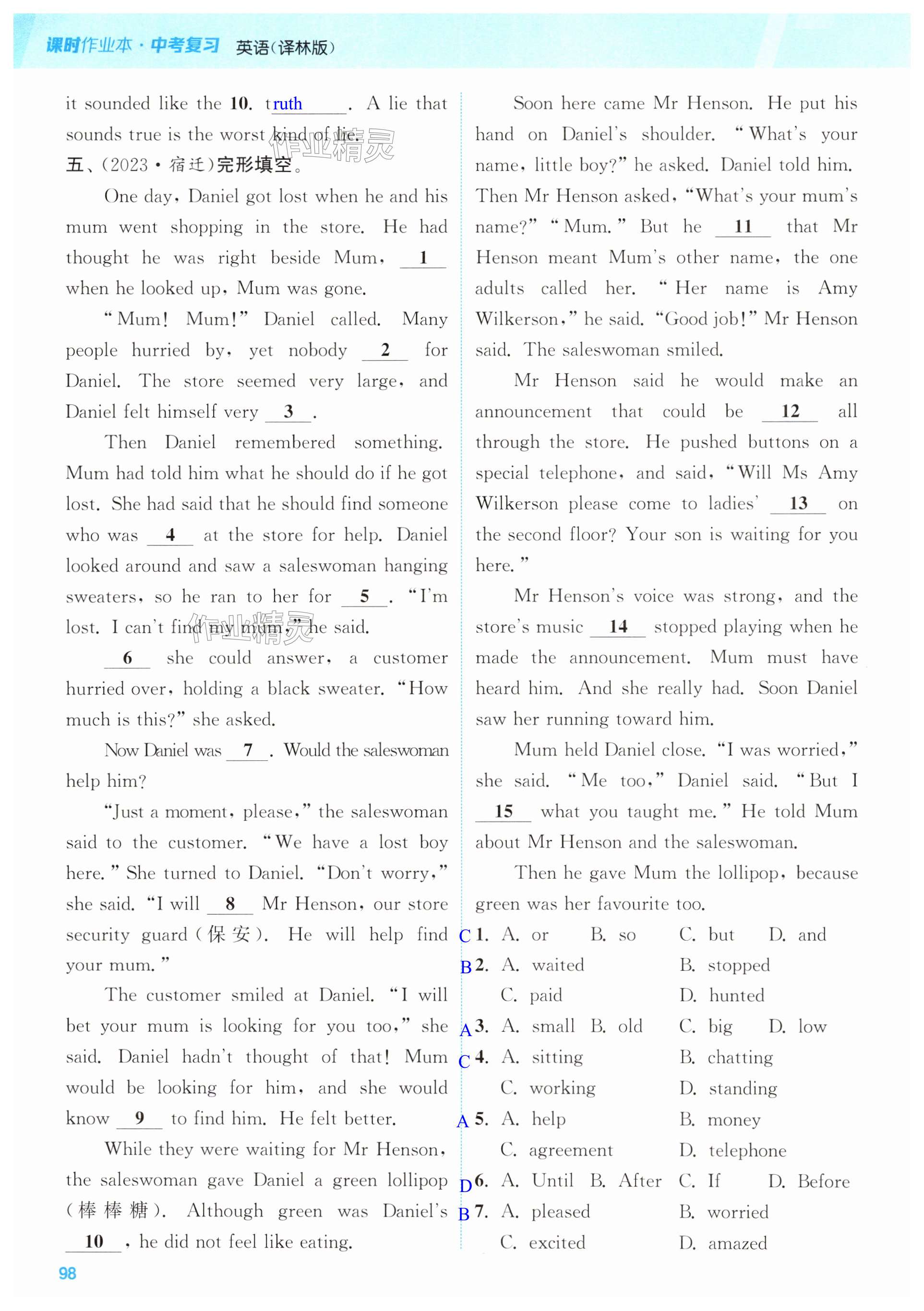 注:目前有些书本章节名称可能整理的还不是很完善,但都是按照顺序排列的,请同学们按照顺序仔细查找。练习册 2025年通城学典课时作业本中考复习英语译林版江苏专版 答案主要是用来给同学们做完题方便对答案用的,请勿直接抄袭。