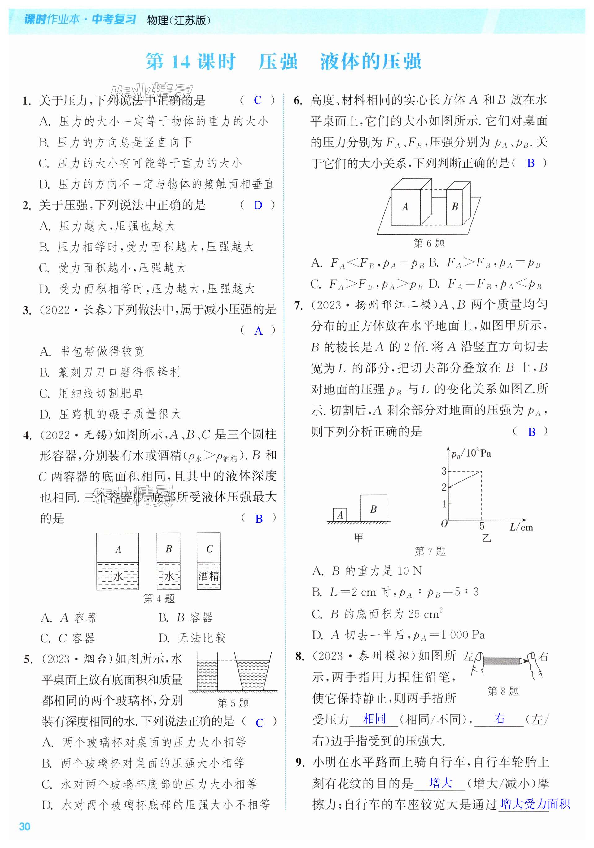 注:目前有些书本章节名称可能整理的还不是很完善,但都是按照顺序排列的,请同学们按照顺序仔细查找。练习册 2025年通城学典课时作业本中考复习物理江苏专版 答案主要是用来给同学们做完题方便对答案用的,请勿直接抄袭。