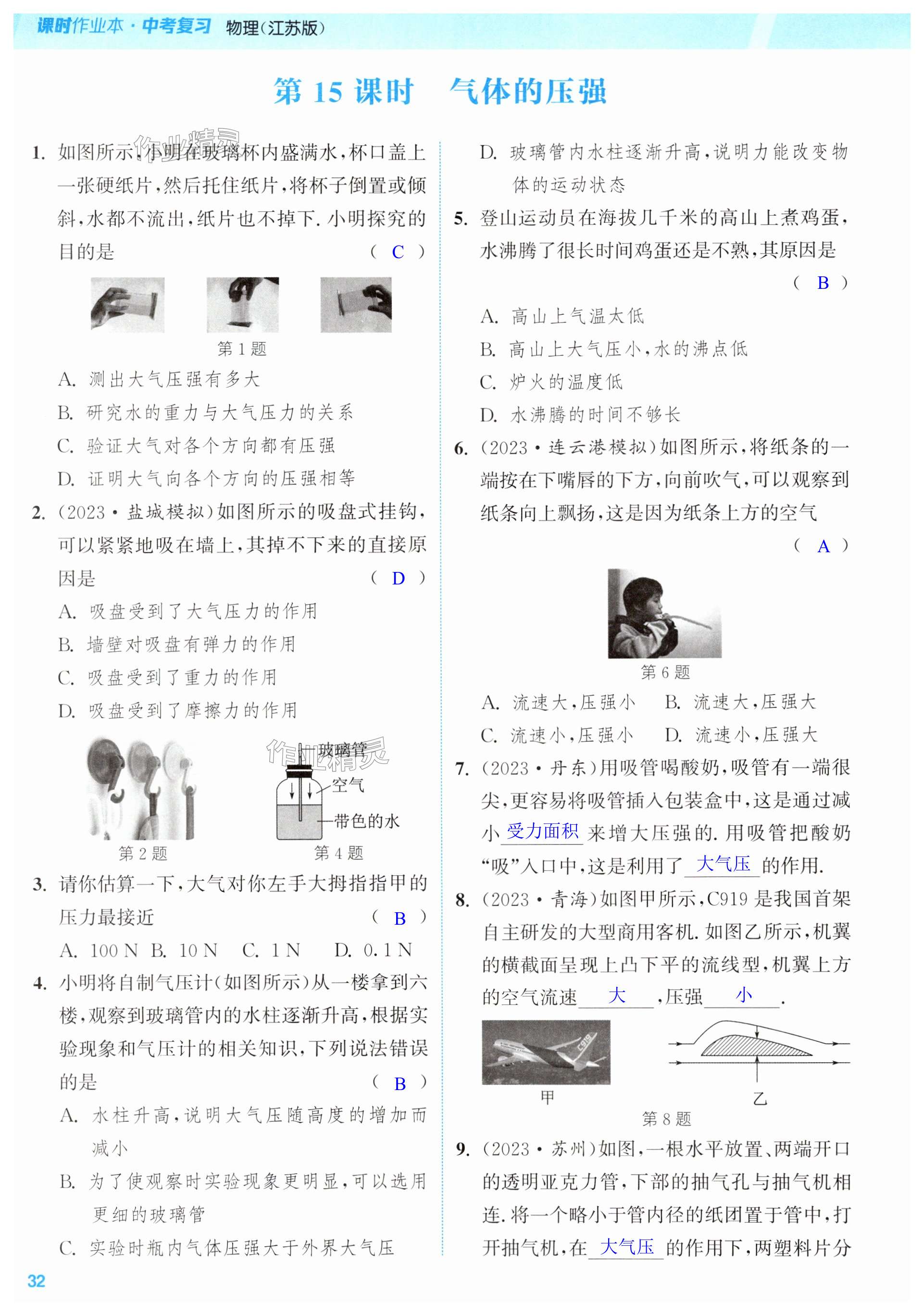 注:目前有些书本章节名称可能整理的还不是很完善,但都是按照顺序排列的,请同学们按照顺序仔细查找。练习册 2025年通城学典课时作业本中考复习物理江苏专版 答案主要是用来给同学们做完题方便对答案用的,请勿直接抄袭。
