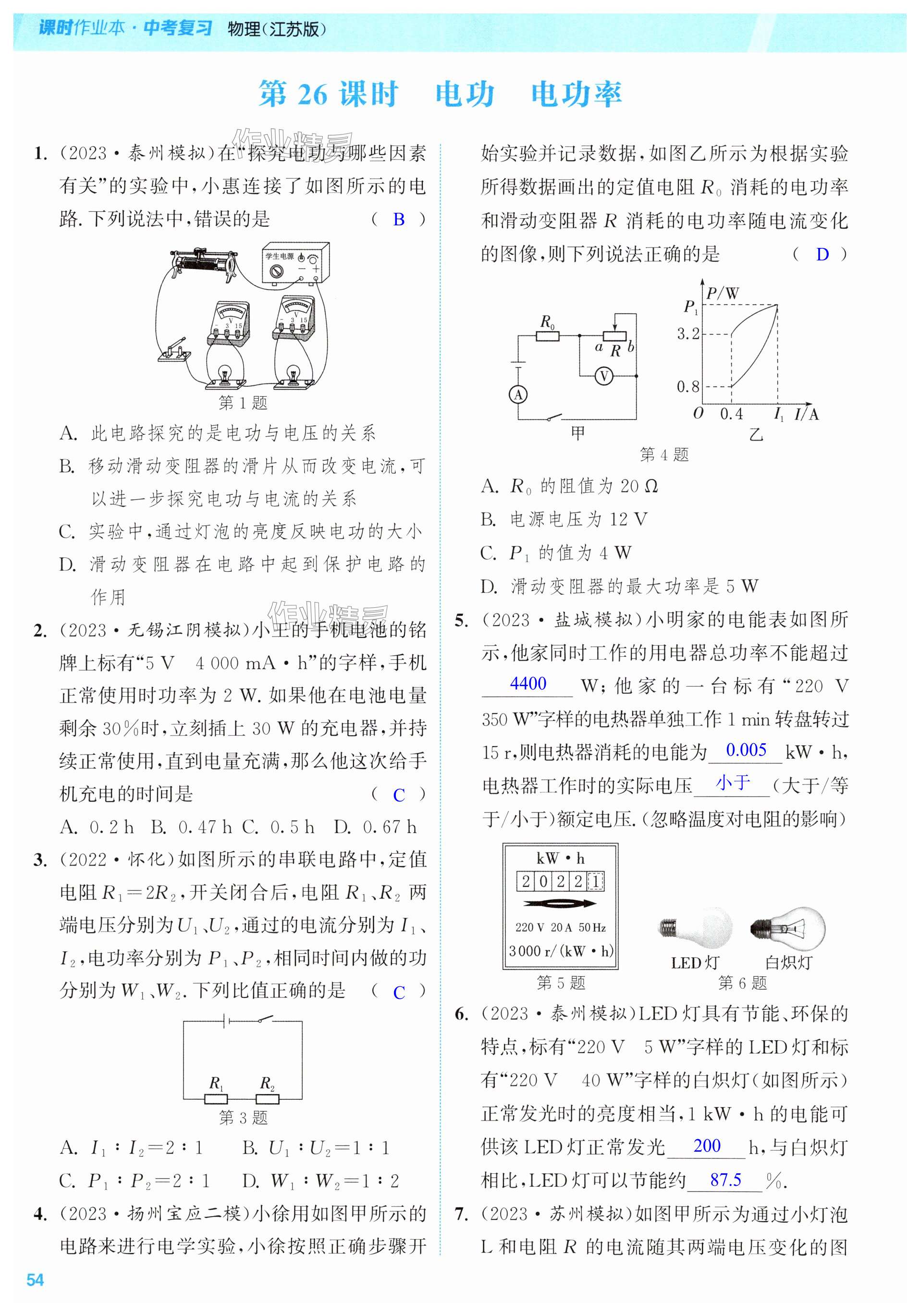 注:目前有些书本章节名称可能整理的还不是很完善,但都是按照顺序排列的,请同学们按照顺序仔细查找。练习册 2025年通城学典课时作业本中考复习物理江苏专版 答案主要是用来给同学们做完题方便对答案用的,请勿直接抄袭。