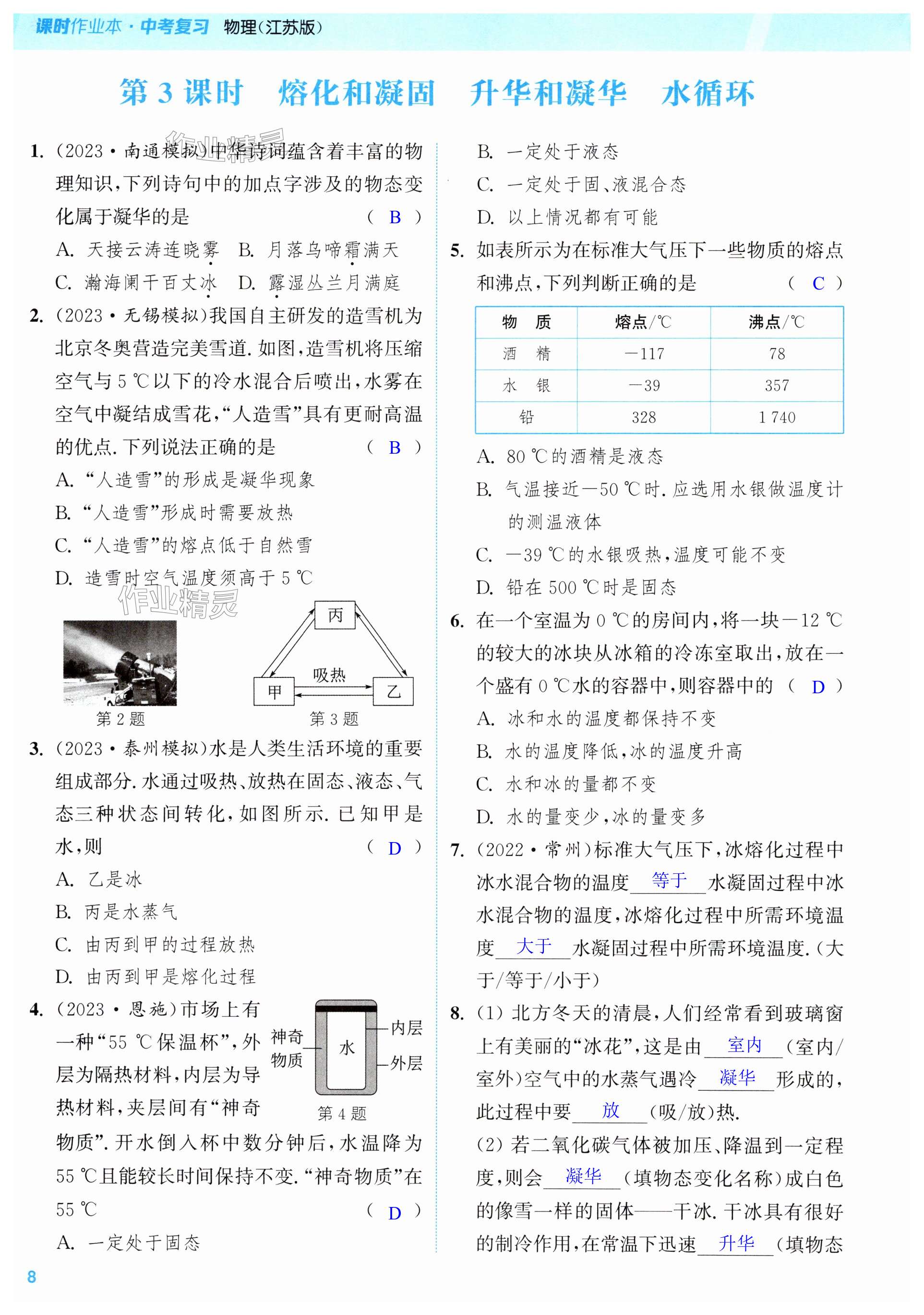 注:目前有些书本章节名称可能整理的还不是很完善,但都是按照顺序排列的,请同学们按照顺序仔细查找。练习册 2025年通城学典课时作业本中考复习物理江苏专版 答案主要是用来给同学们做完题方便对答案用的,请勿直接抄袭。