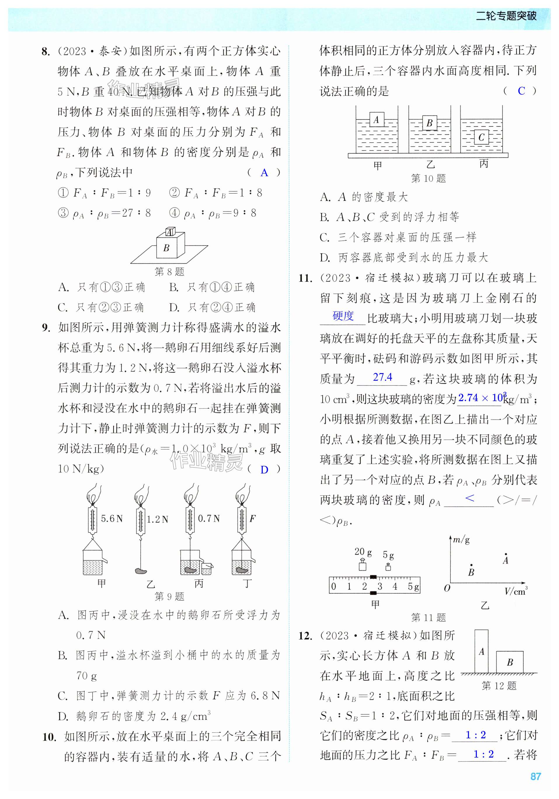 注:目前有些书本章节名称可能整理的还不是很完善,但都是按照顺序排列的,请同学们按照顺序仔细查找。练习册 2025年通城学典课时作业本中考复习物理江苏专版 答案主要是用来给同学们做完题方便对答案用的,请勿直接抄袭。