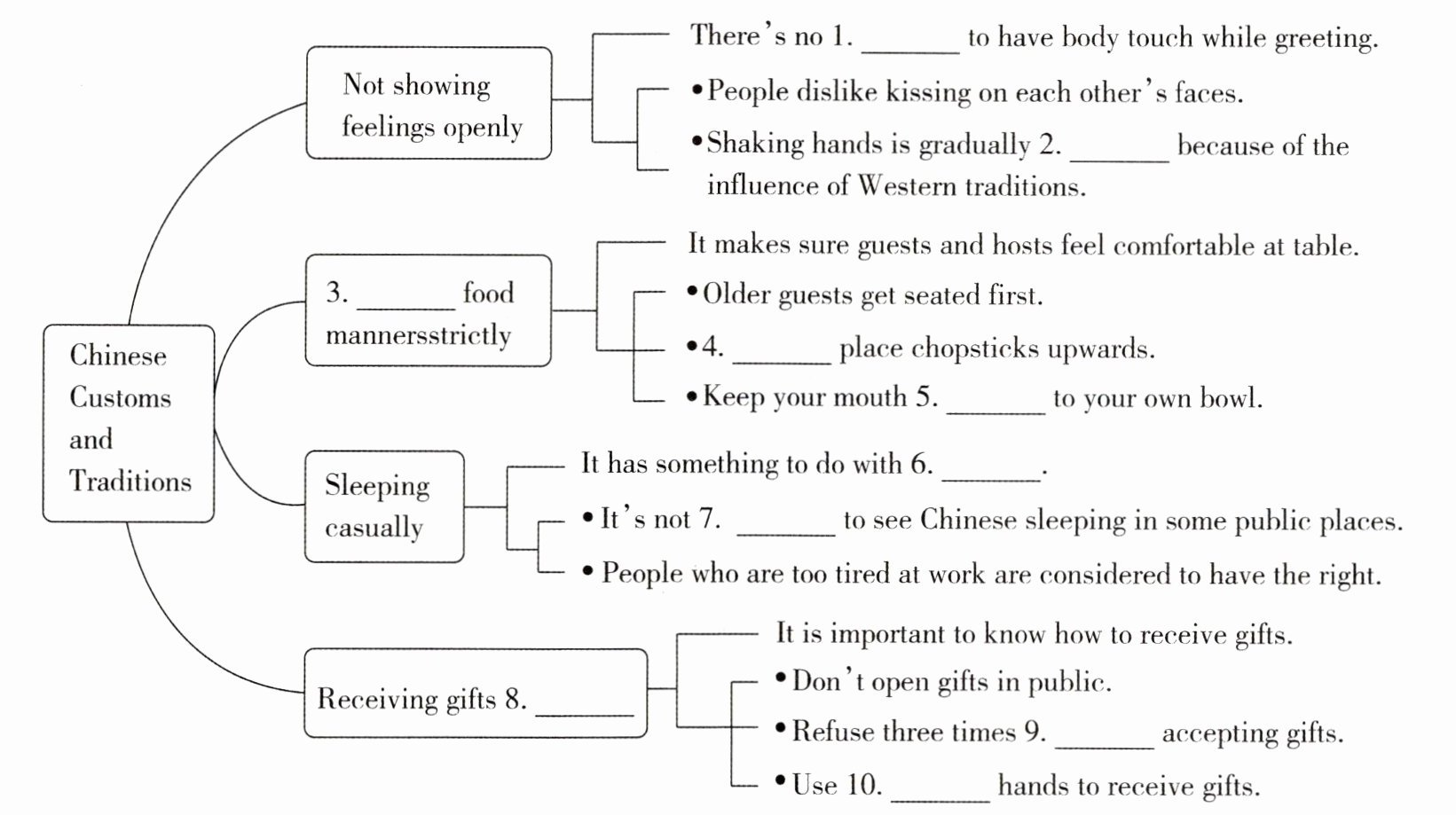 新趋势 思维导图 Edward将自己需要注意的礼仪制成了思维导图,我们帮他补充完整吧!(每空一词)