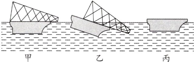 ③驳船和导管架完全分离后,静止时空驳船排开海水的体积为5×10⁴ m³,如图丙所示;