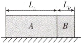 5.(2024·扬州江都区二模)有一个密度均匀的长方体铜块,被截成A、B两块,如图所示. 已知$L_A:L_B = 3:1$,则它们对水平桌面的压力和压强之比分别为 ( )